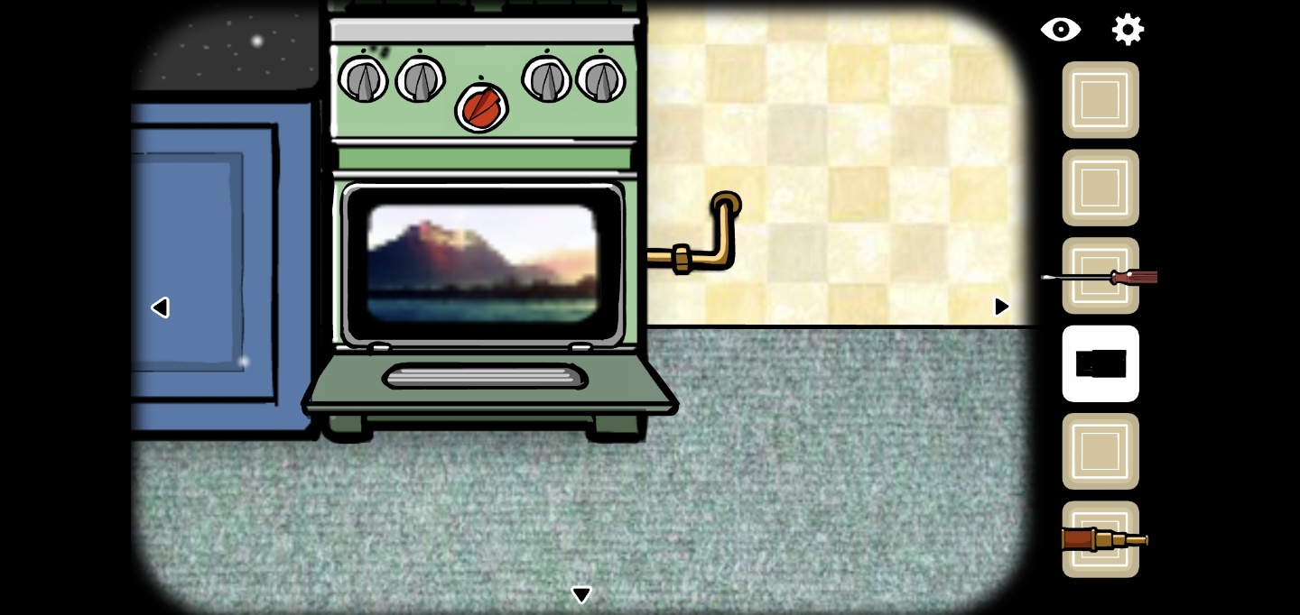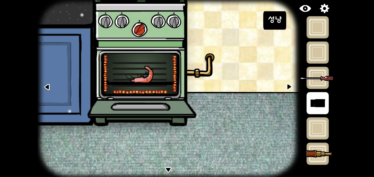 금고를 열면 새우가 나오는데 오븐에 넣고 구우면 풍경이 나타납니다.