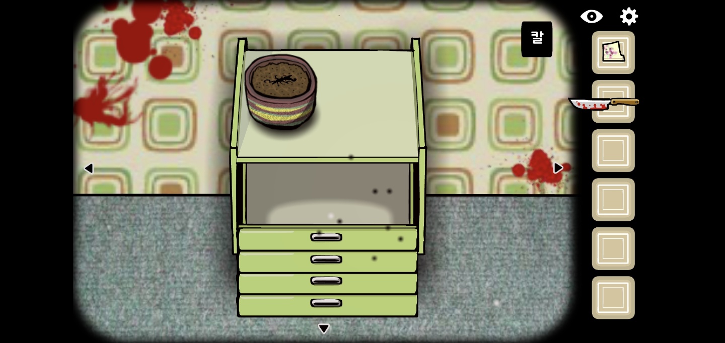 심지어 서랍에는 피 묻은 식칼이 들어있습니다.