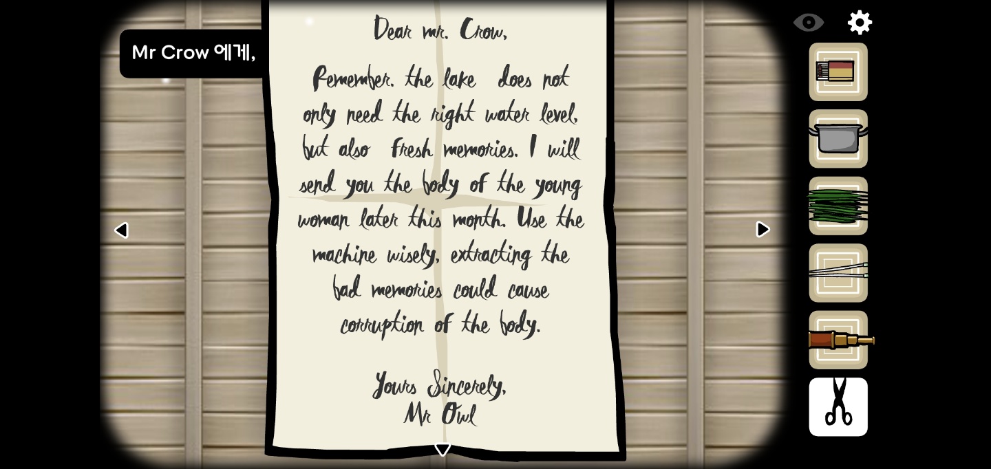 미스터 크로우가 기계로 기억을 추출합니다.