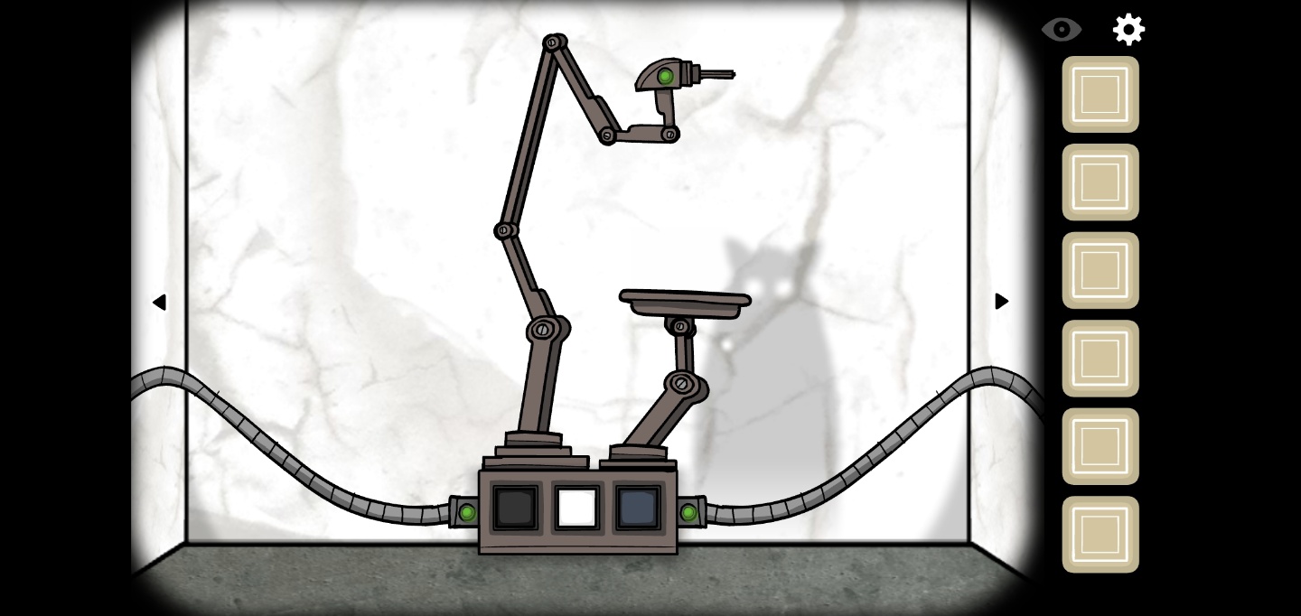 둘을 연결하고 있는 기계에 검은 큐브, 하얀 큐브, 파란 큐브를 꽂습니다.