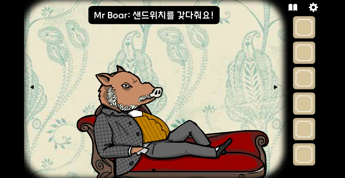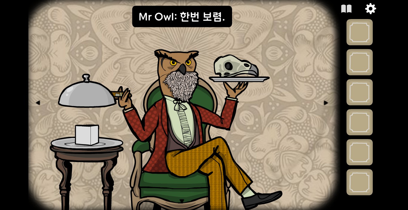 미스터 크로우는 하비에게 멧돼지 요리를 들고 호텔의 주인인 미스터 아울에게 찾아가라고 말합니다.