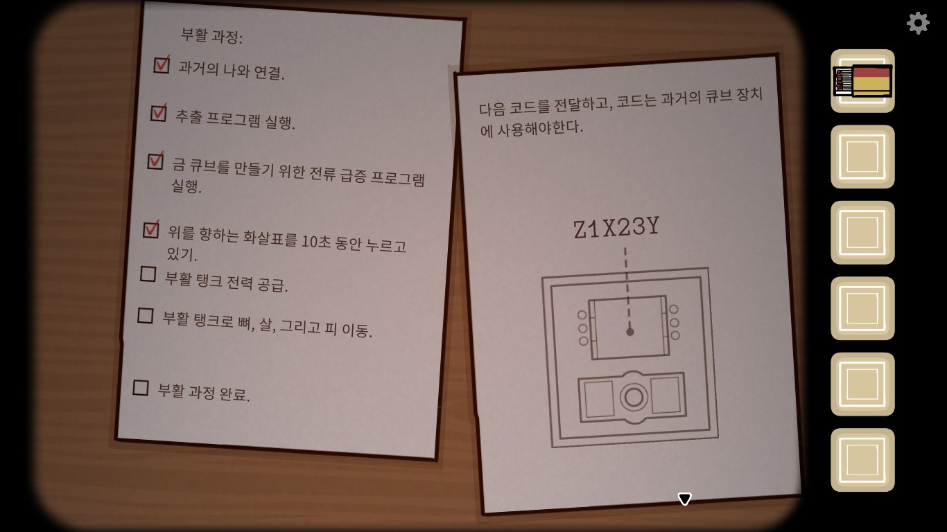 이번 챕터에선 과거 플레이어(로즈)가 큐브 장치를 조작해서 미래 플레이어를 돕습니다.