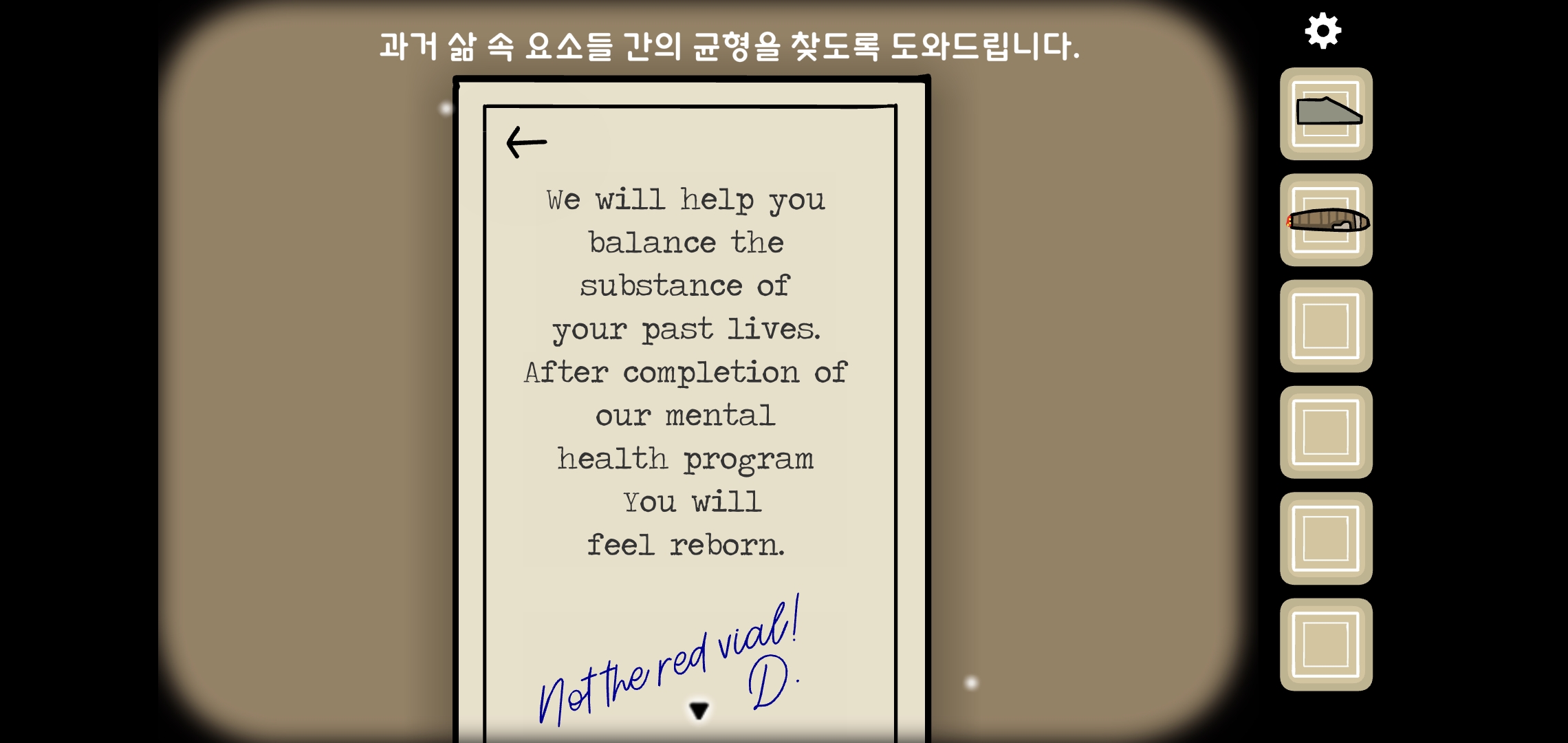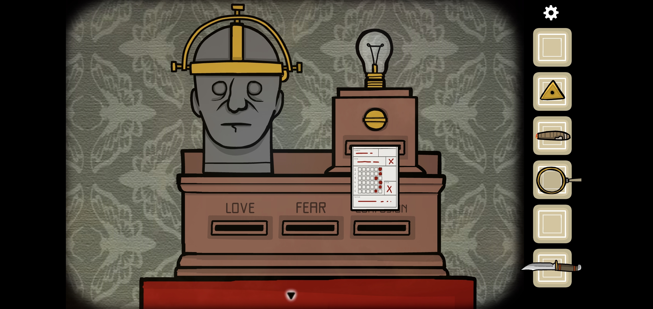 장치에서 나오는 카드를 사랑, 공포, 혼란으로 구별해서 넣으면 성격 검사지와 과거 정신(뇌)을 얻을 수 있습니다.