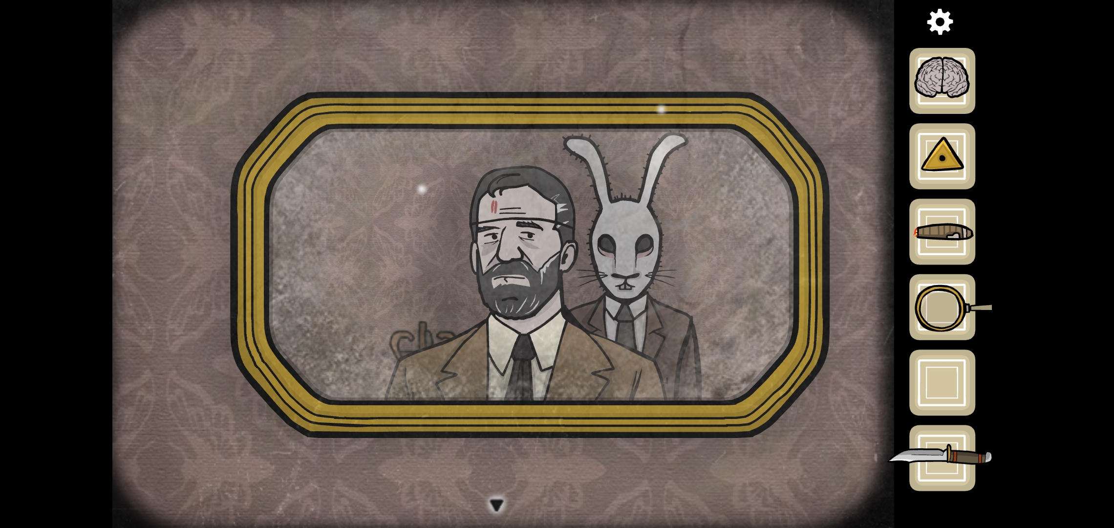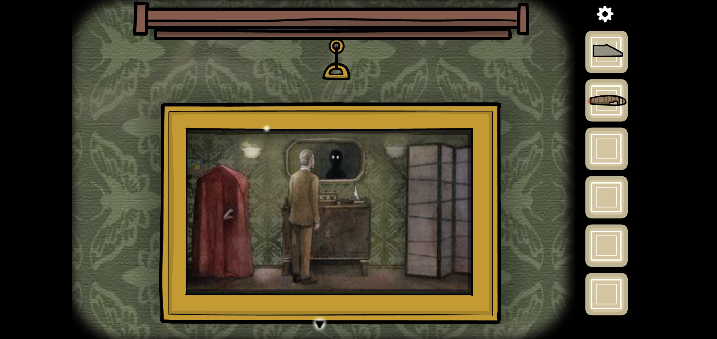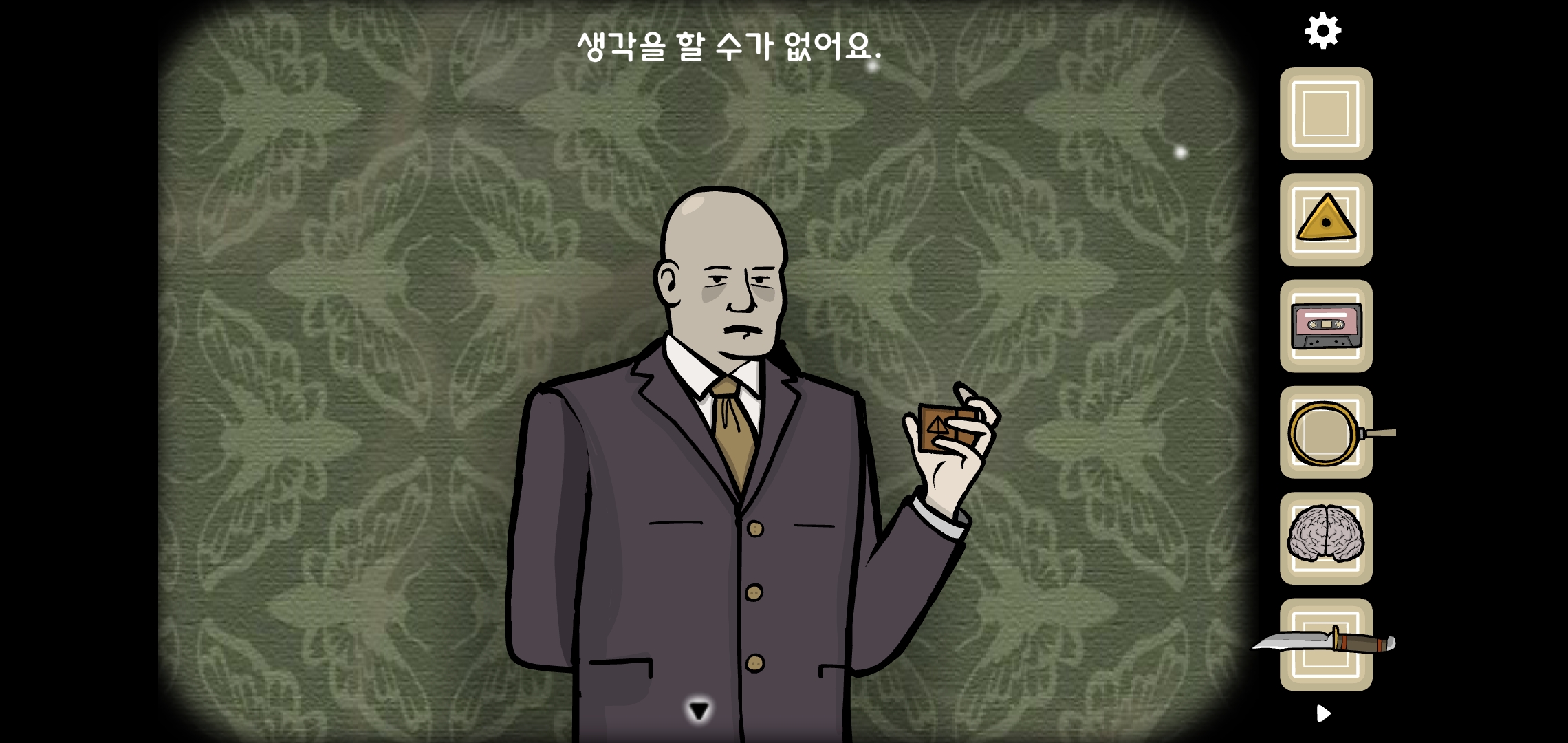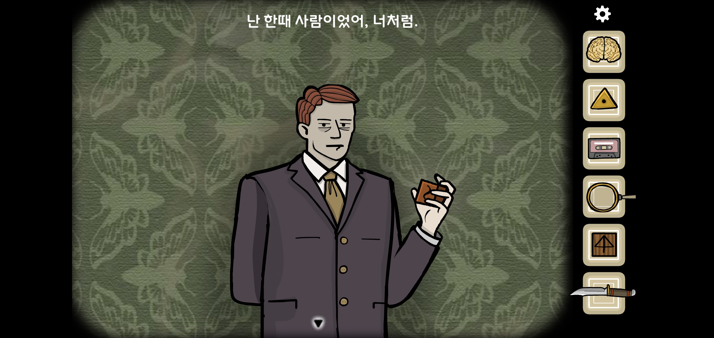 대신 문 손잡이가 파란색으로 바뀌었고 로라의 환영 대신 뇌를 쥐고 있는 그림자를 봅니다.