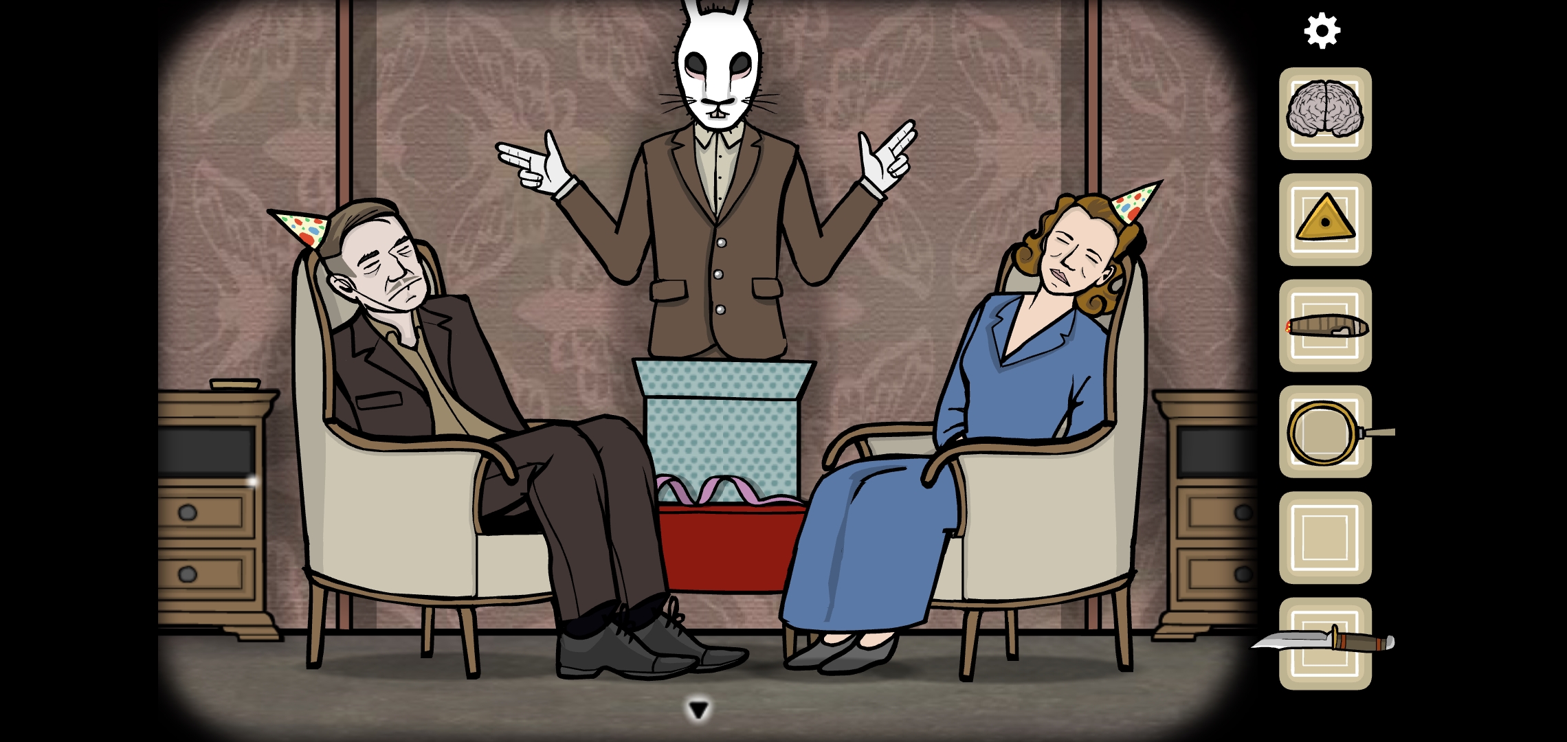 열쇠구멍 너머로 토끼가면이 보입니다.