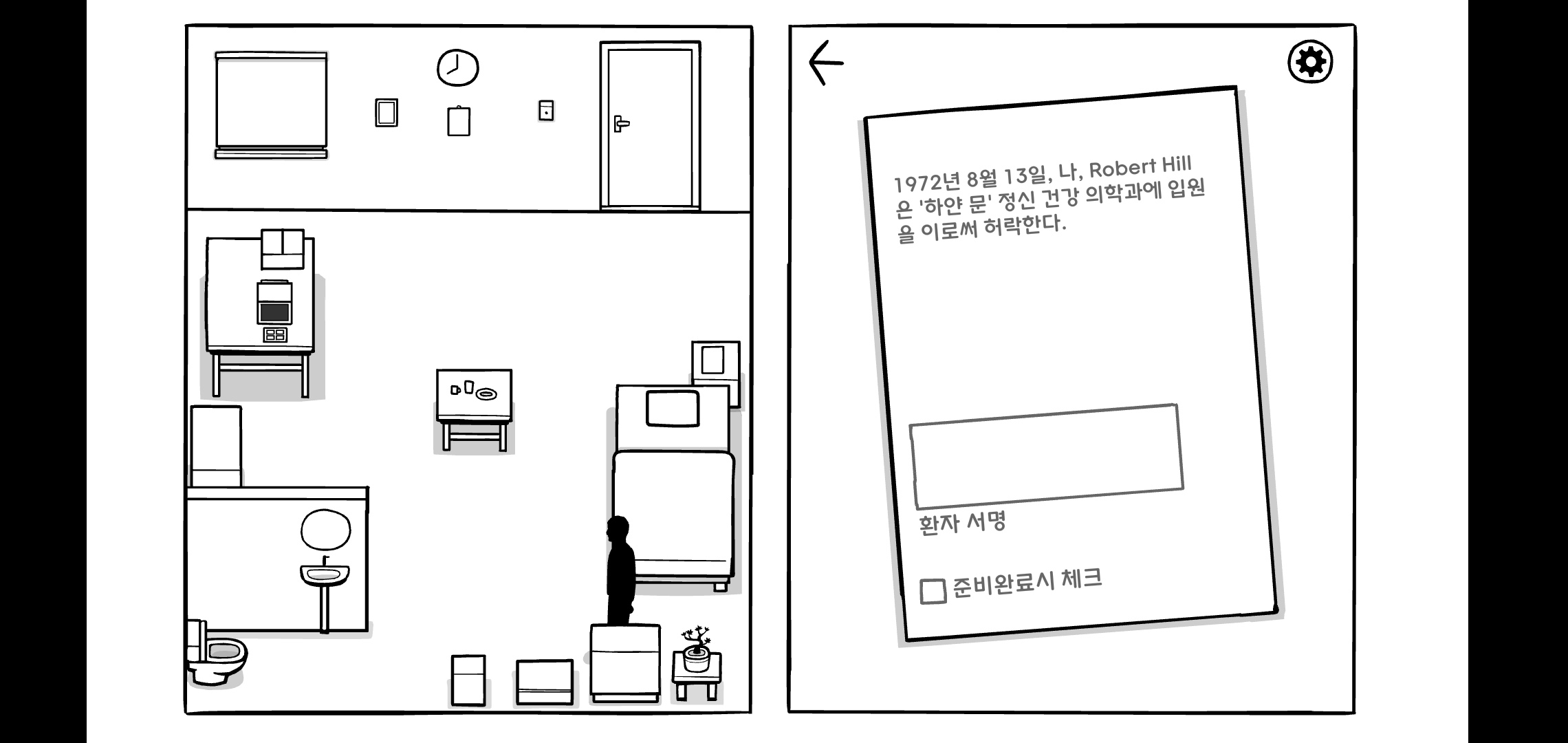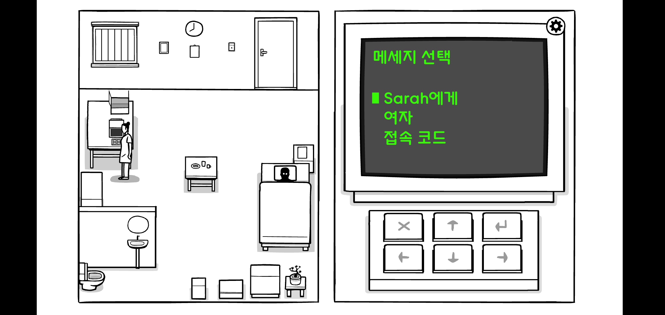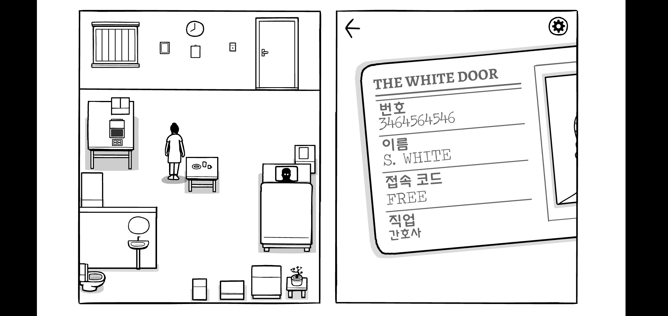 DAY7처럼 시작이 특이한데 플레이어가 간호사 사라가 되어 문을 열고 병실에 들어갑니다.