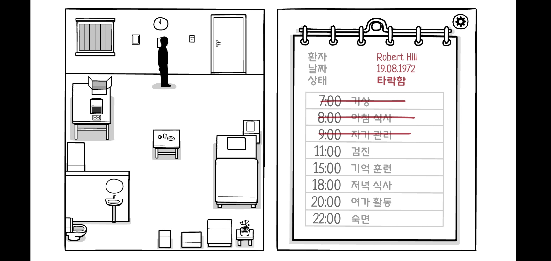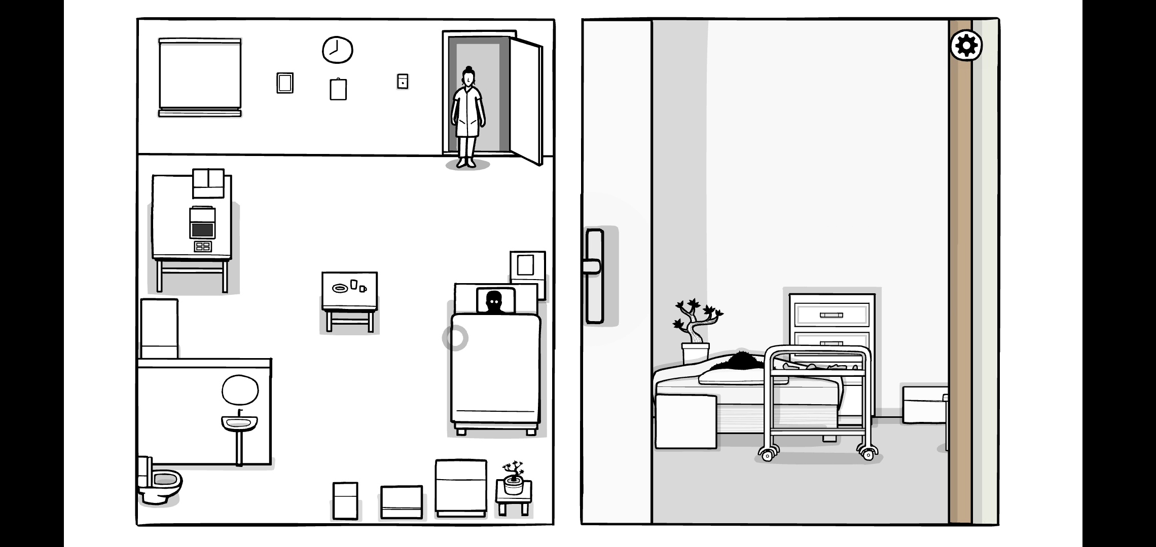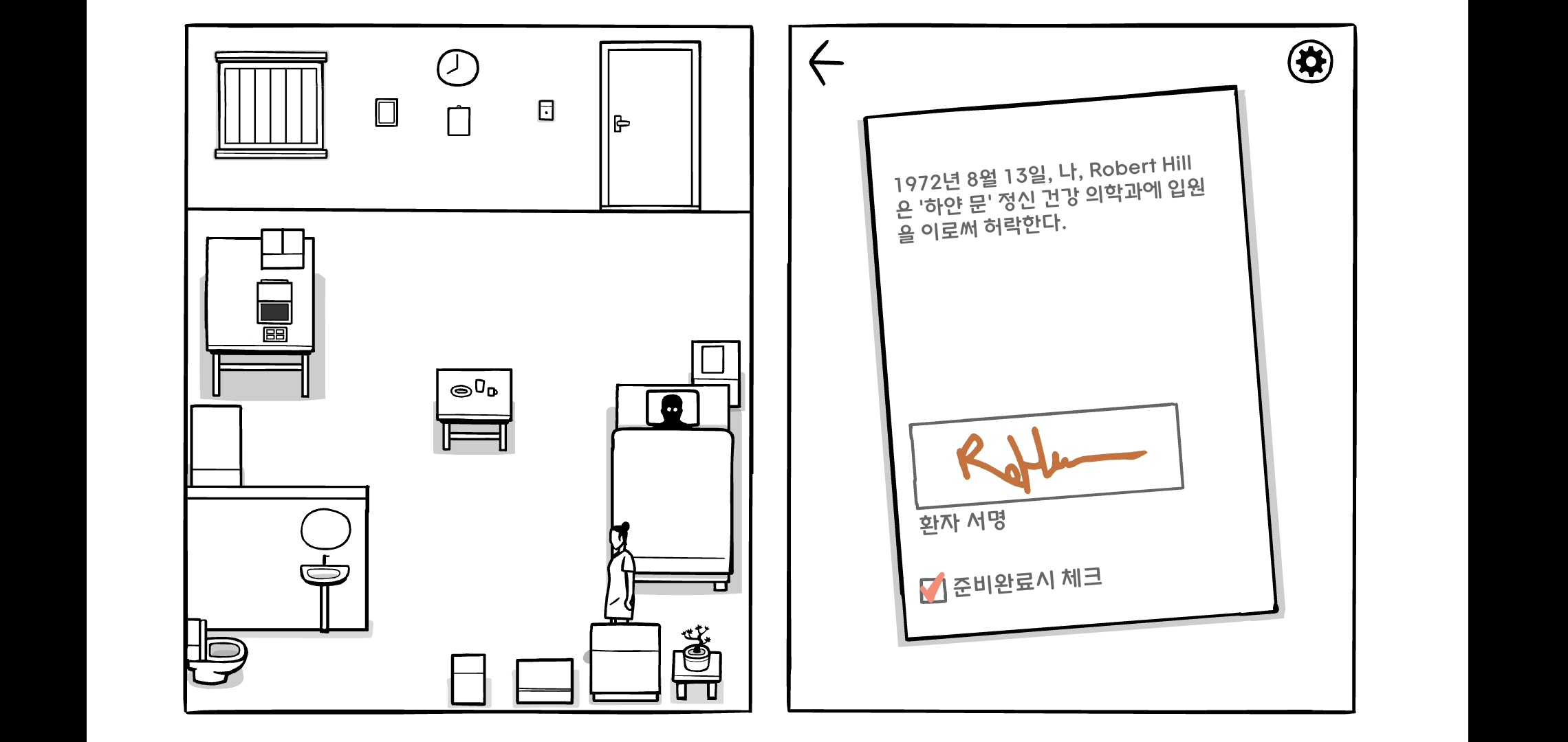 DAY7처럼 시작이 특이한데 플레이어가 간호사 사라가 되어 문을 열고 병실에 들어갑니다.