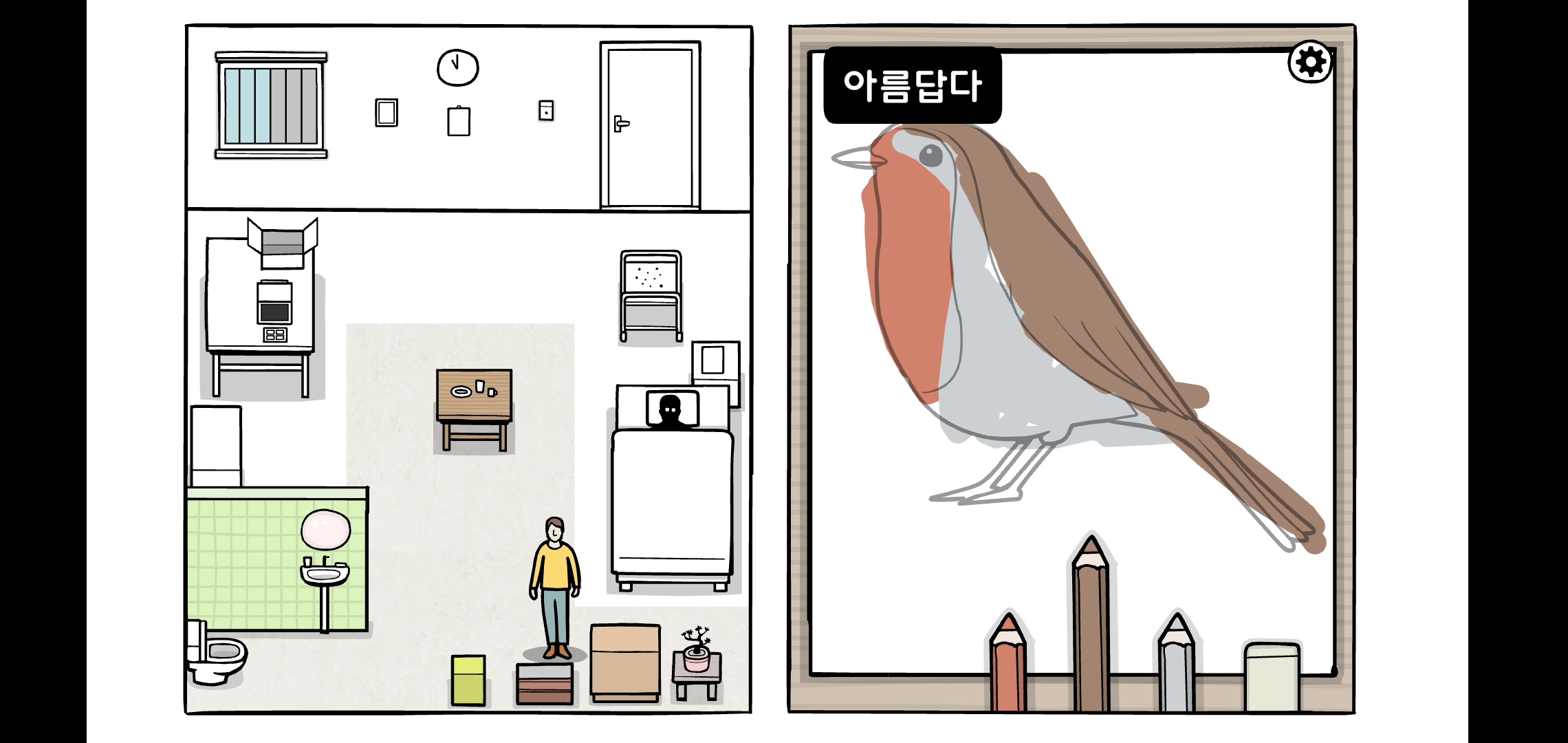방으로 나온 그림자가 말합니다.