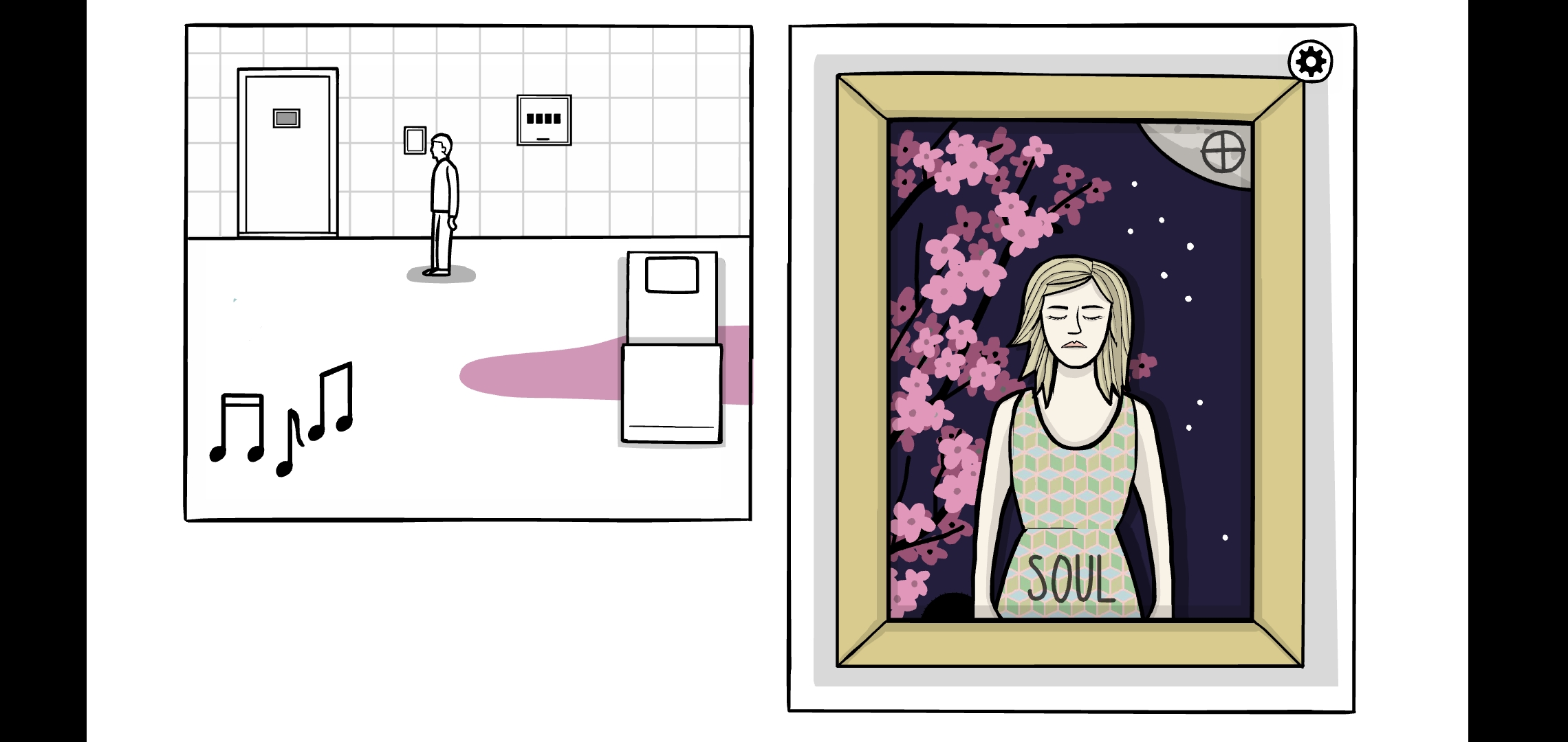 화이트 도어는 챕터별로 게임과 꿈(로버트의 기억)으로 구성되어 있습니다.