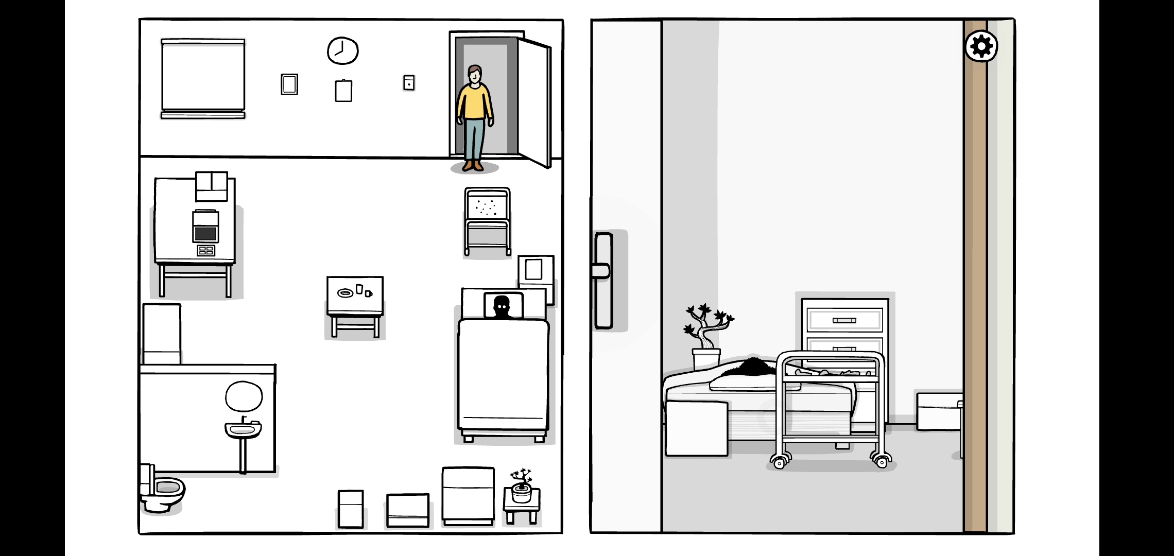 플레이어는 그림자로 이동할 수 있는데 마지막 코드인 CUBE를 얻고 침대에서 잠을 잡니다.