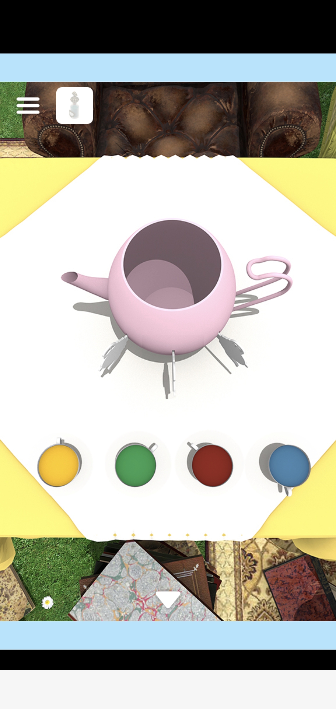 티포트 모양 핀을 분홍색 티포트에 꽂습니다.