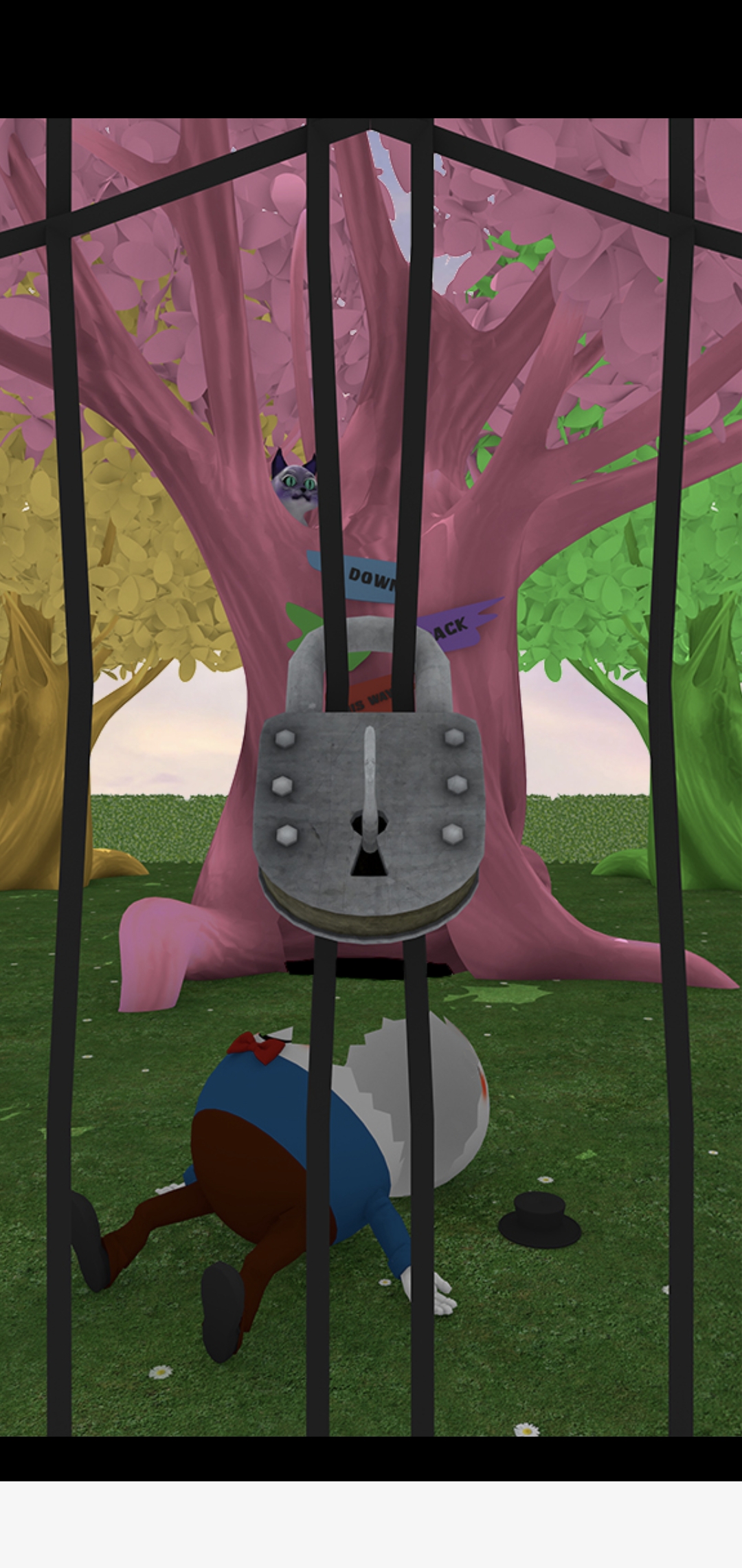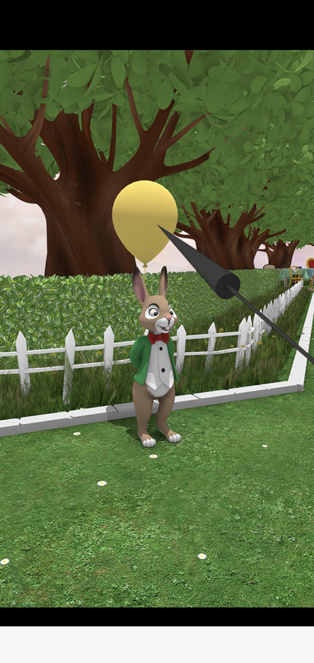 창으로 토끼가 들고 있는 풍선을 터뜨리면 열쇠를 획득할 수 있습니다.