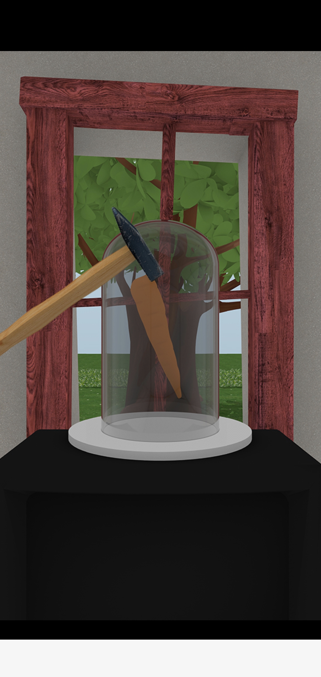 망치로 유리덮개를 깨고 당근을 획득합니다.