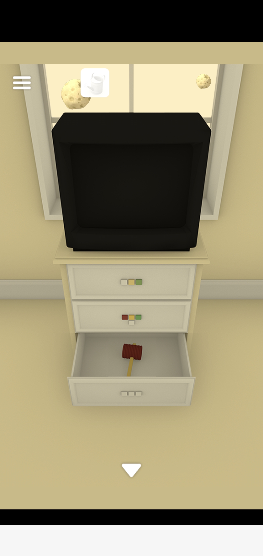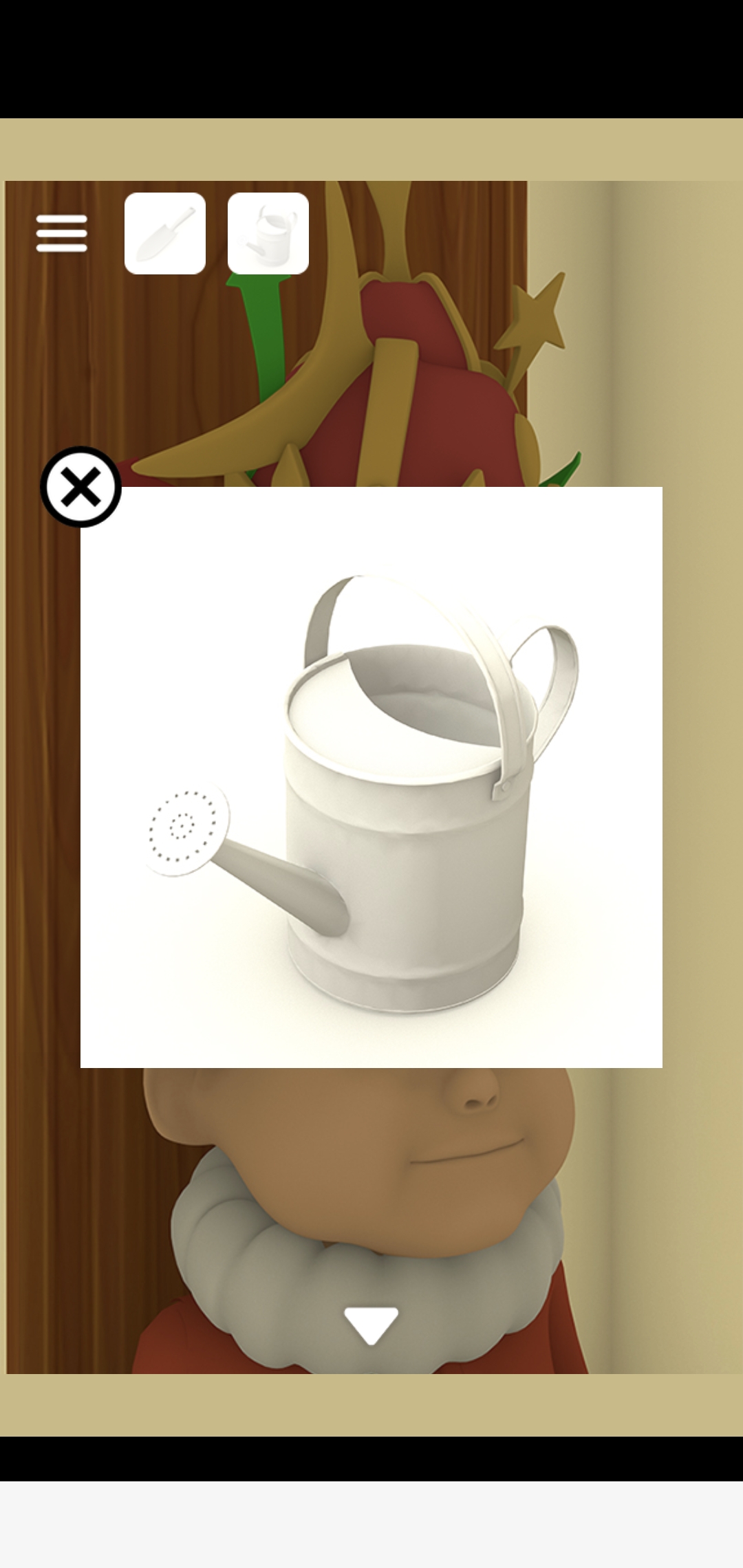 의자 밑을 돌리고 왕관 속에 든 물뿌리개를 획득합니다.