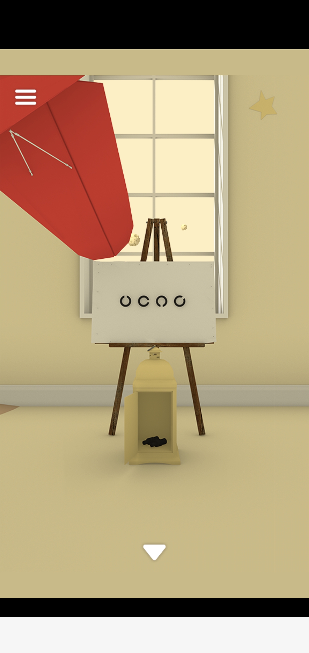 나무에 있는 빨간 종이비행기를 펼치고 문양을 기억합니다.