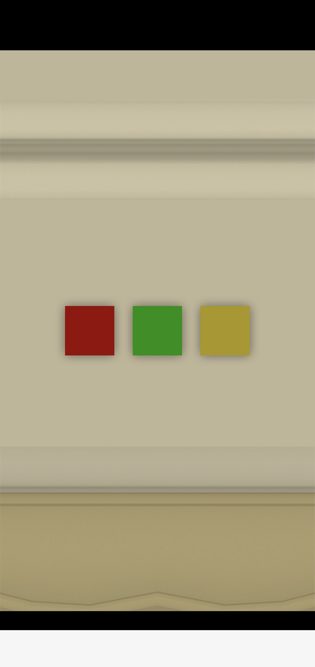 의자 뒤에 파란 문양, 바위에 초록 문양이 있습니다.
