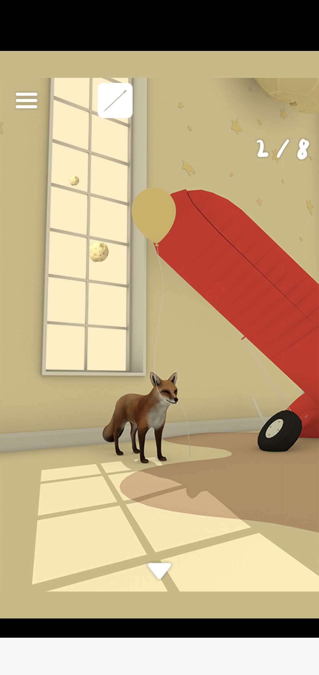 바늘로 풍선을 터뜨리고 열쇠를 획득합니다.