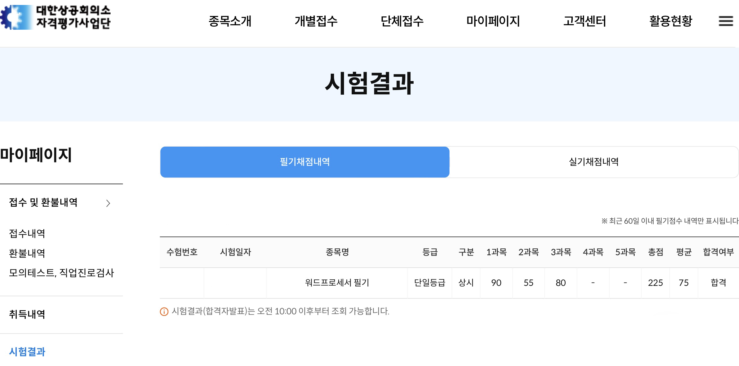상공회의소에서 워드프로세서 시험을 봤습니다.