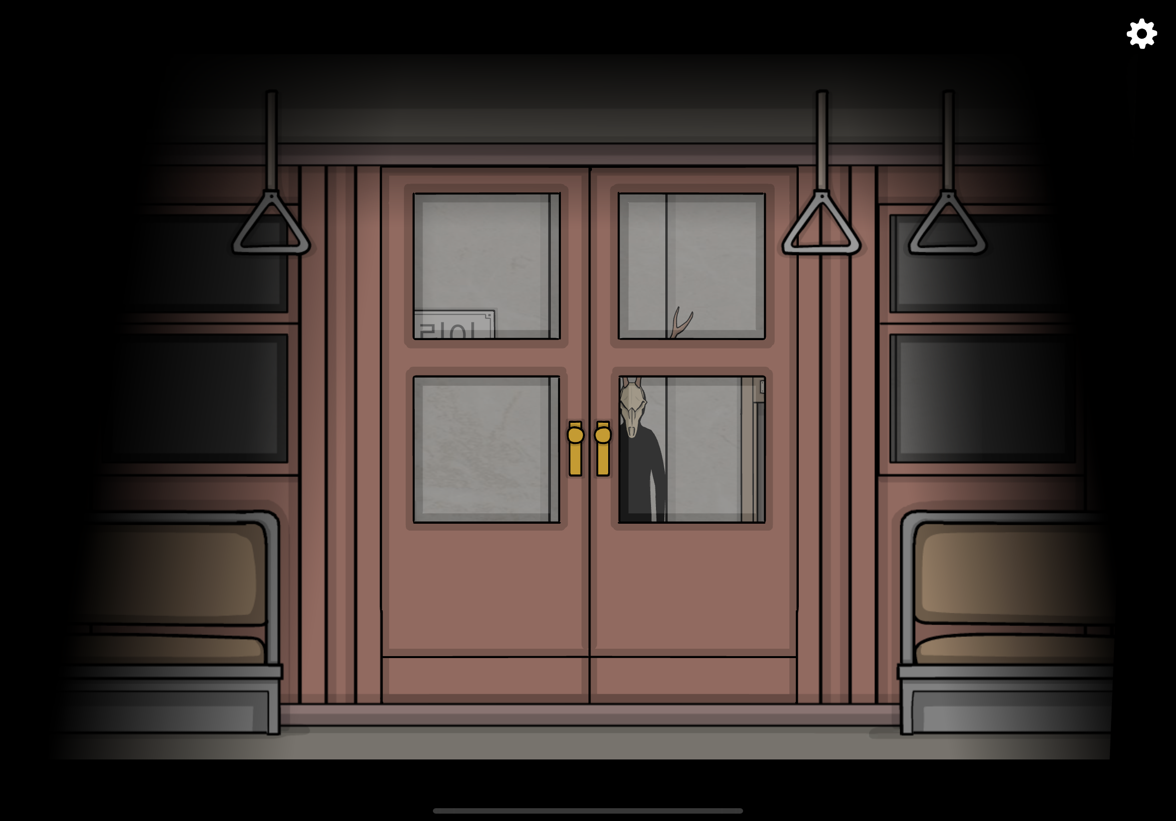 로라 뒤에 사슴 가면을 쓴 그림자가 나타납니다.