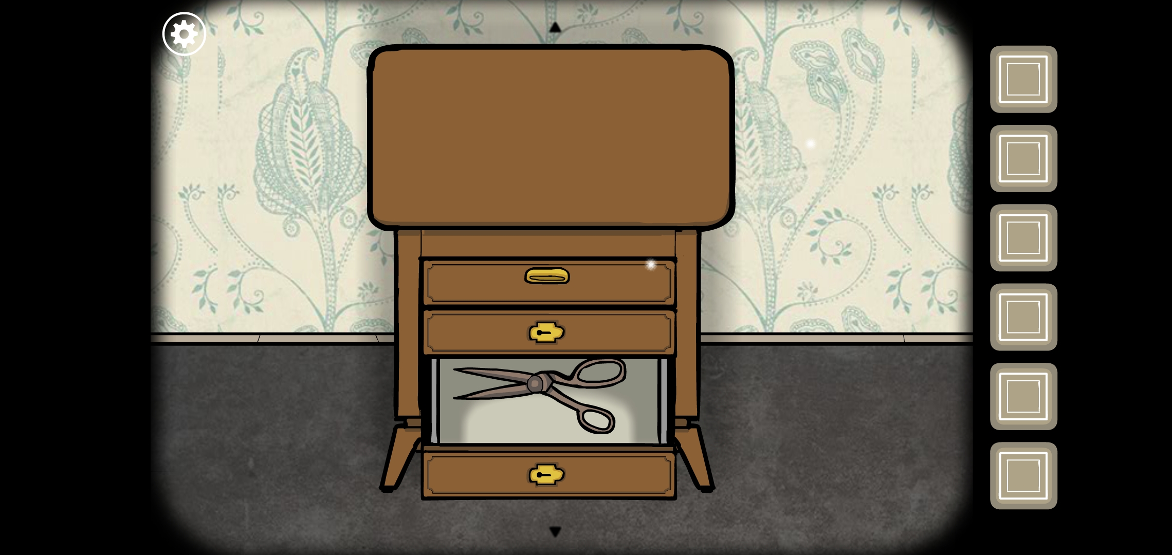 열쇠로 서랍을 열고 가위를 획득합니다.