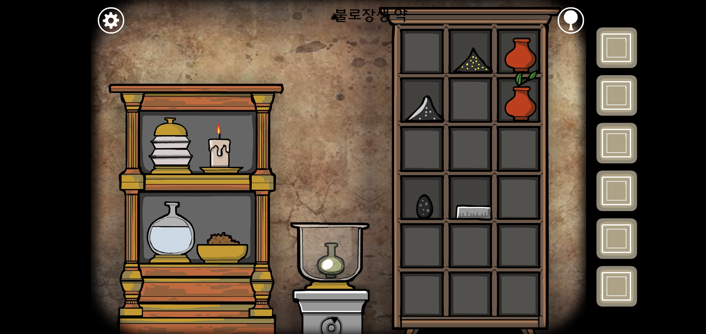 4개의 원소를 조합해서 불로장생 약을 만들어야 합니다.