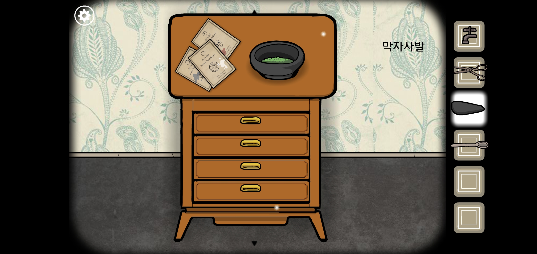 가위, 막자사발, 숟가락을 획득합니다.