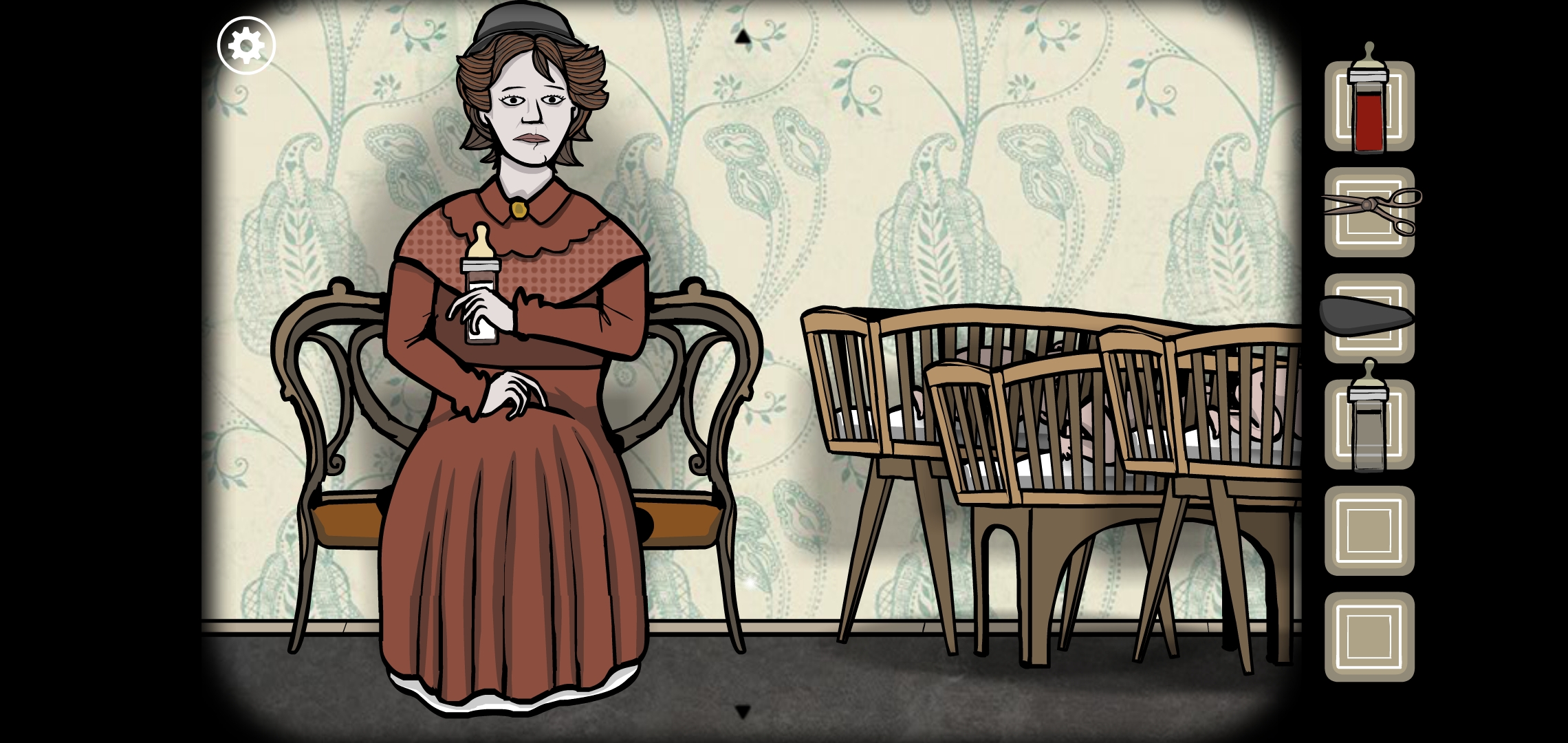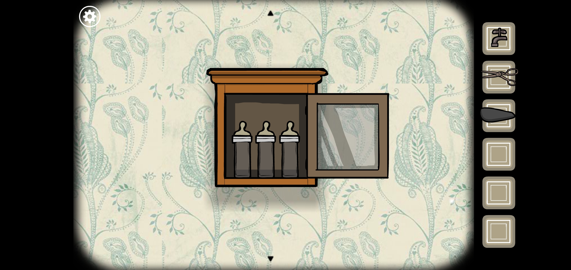 열쇠로 벽선반을 열고 젖병 3개를 획득합니다.
