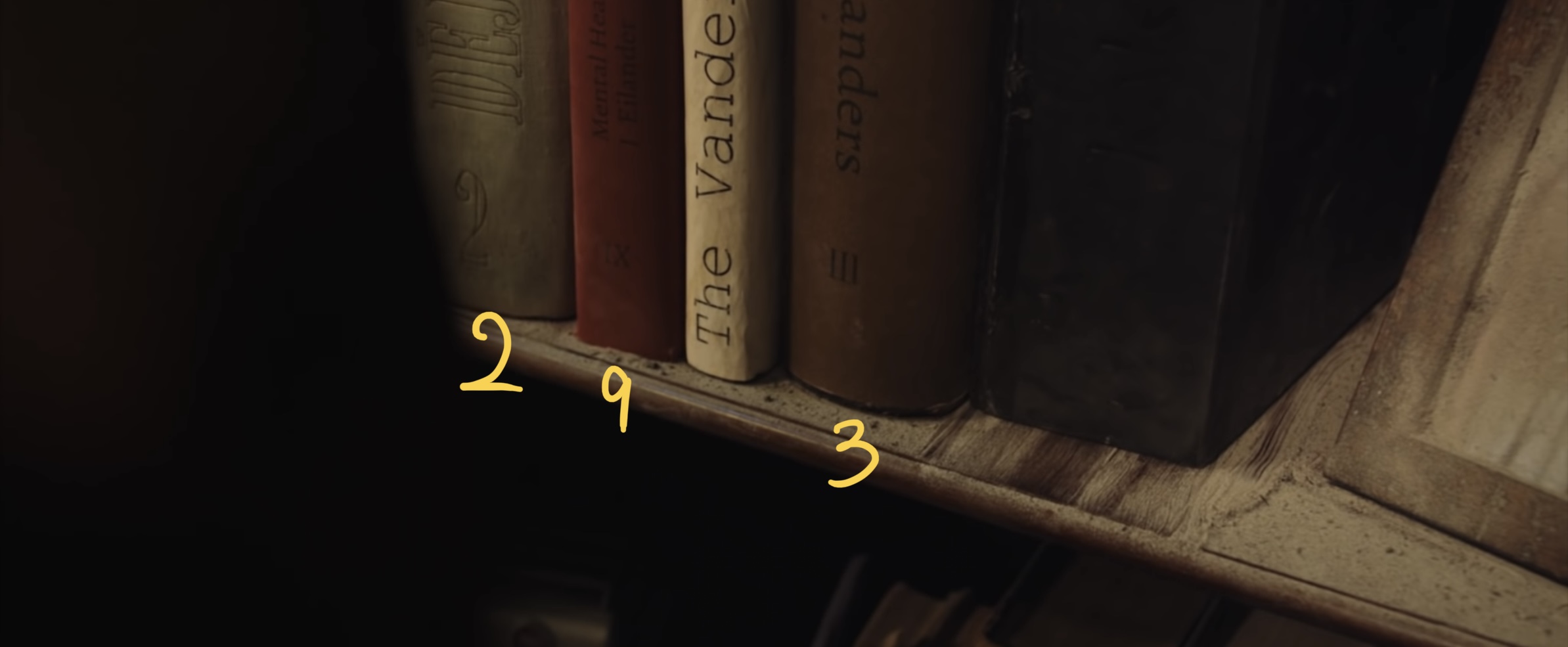 책장 하단 오른쪽을 열쇠로 엽니다.