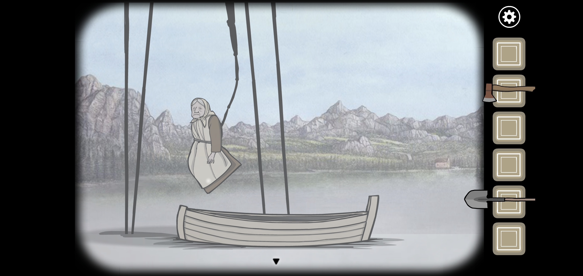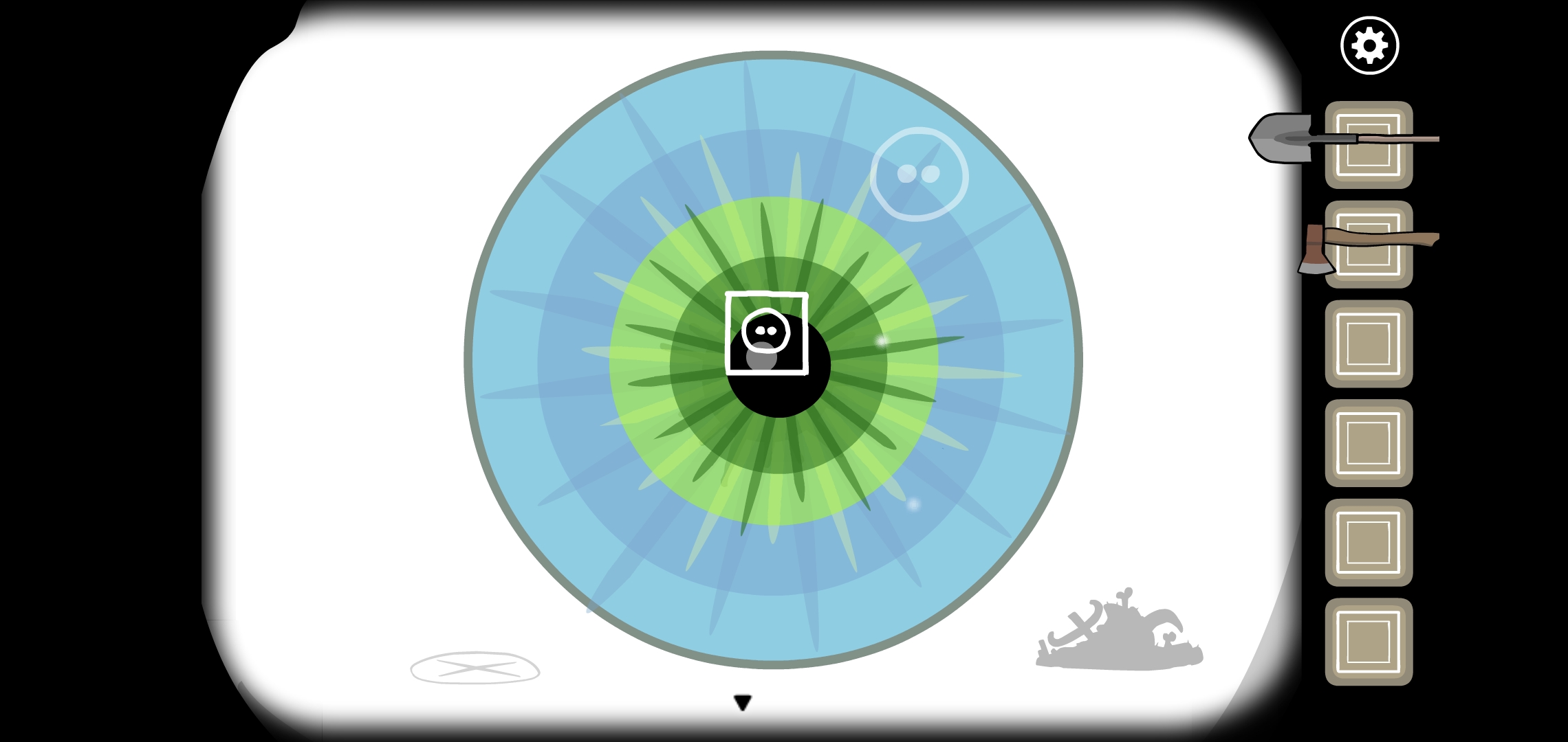 도끼로 나무를 부수고 섬 안으로 들어갑니다.