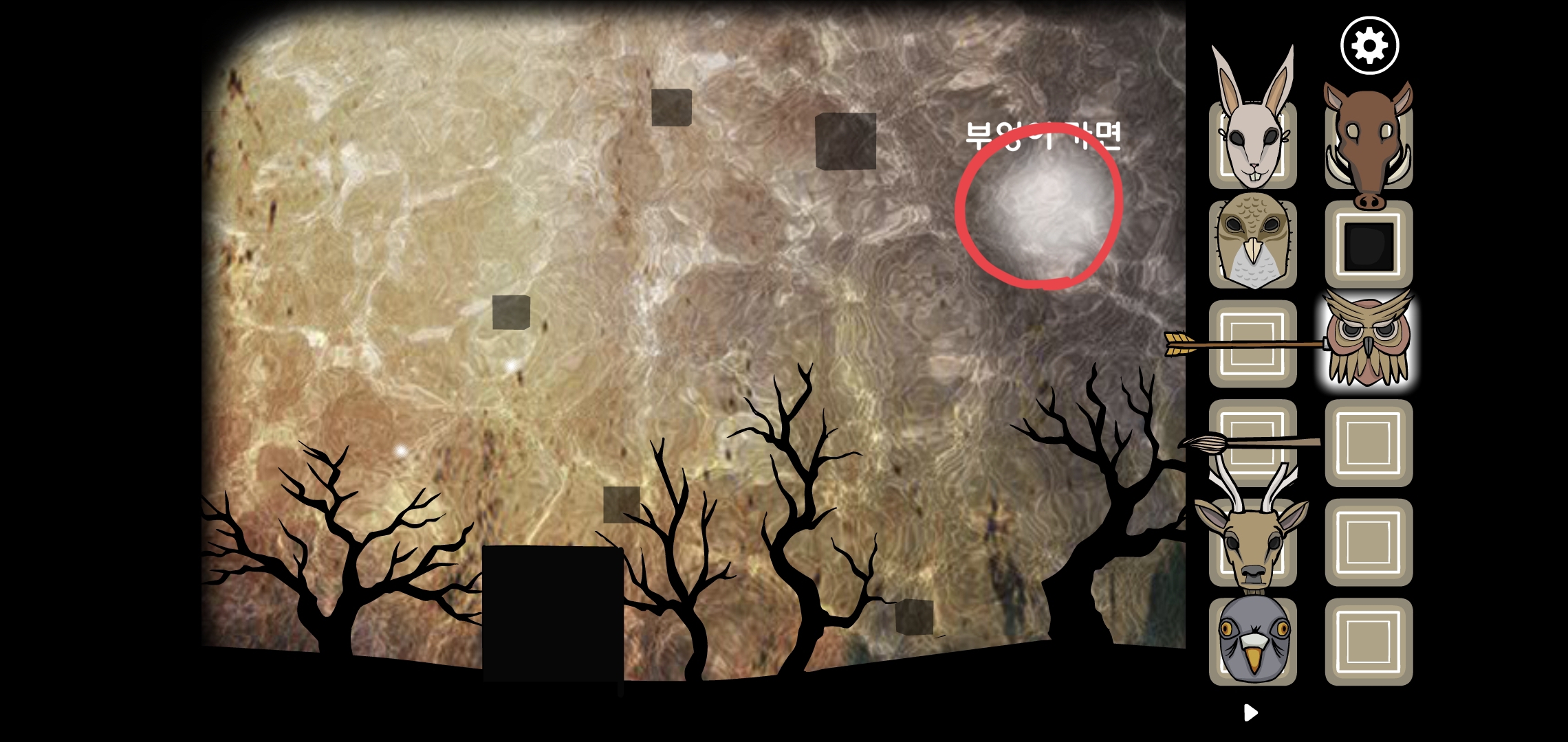 석상 밑에 부엉이 모양 그림을 맞춥니다.