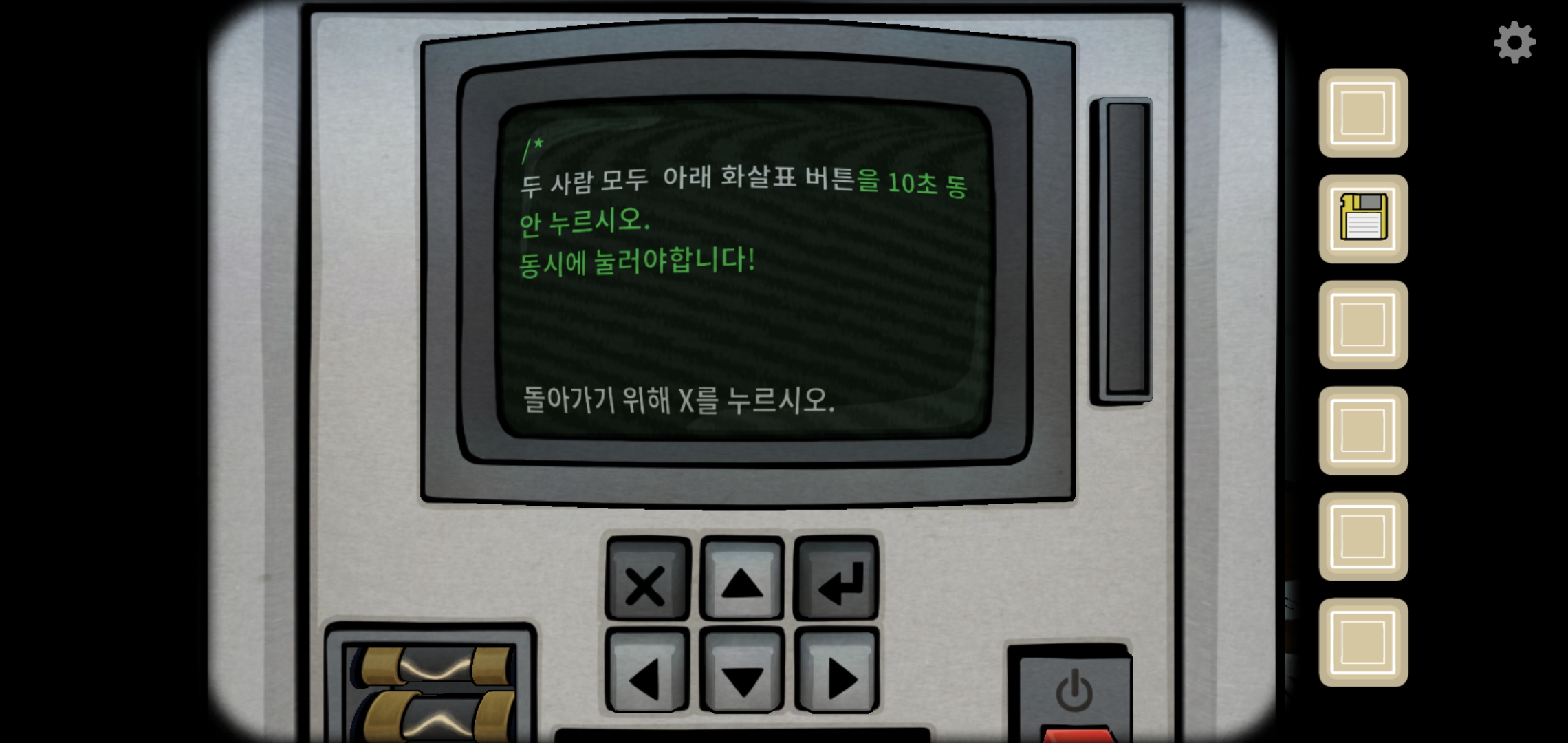 과거의 상대에게 받은 힌트대로 스위치를 위아래로 설정합니다.