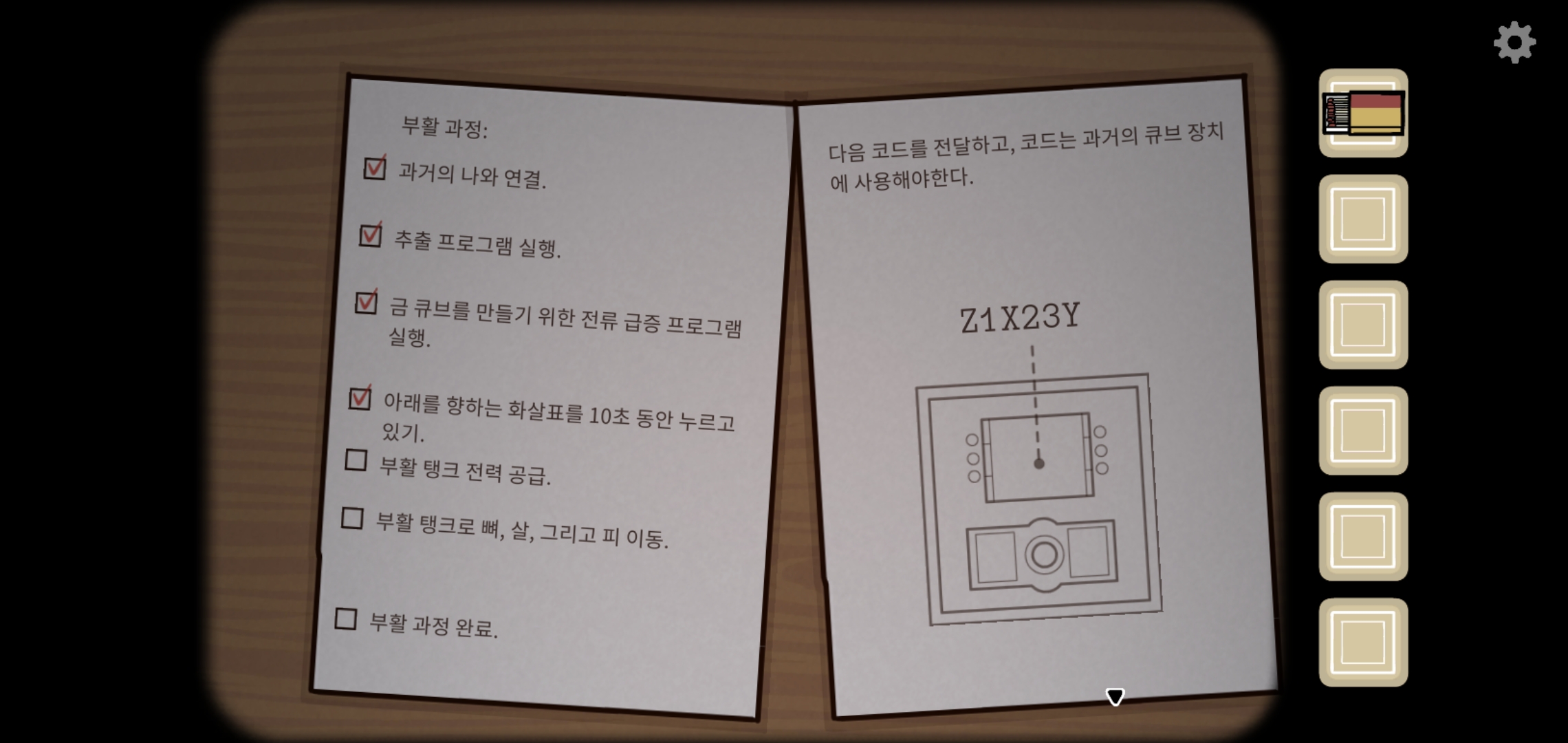 과거의 상대가 준 힌트대로 버튼을 조작합니다.
