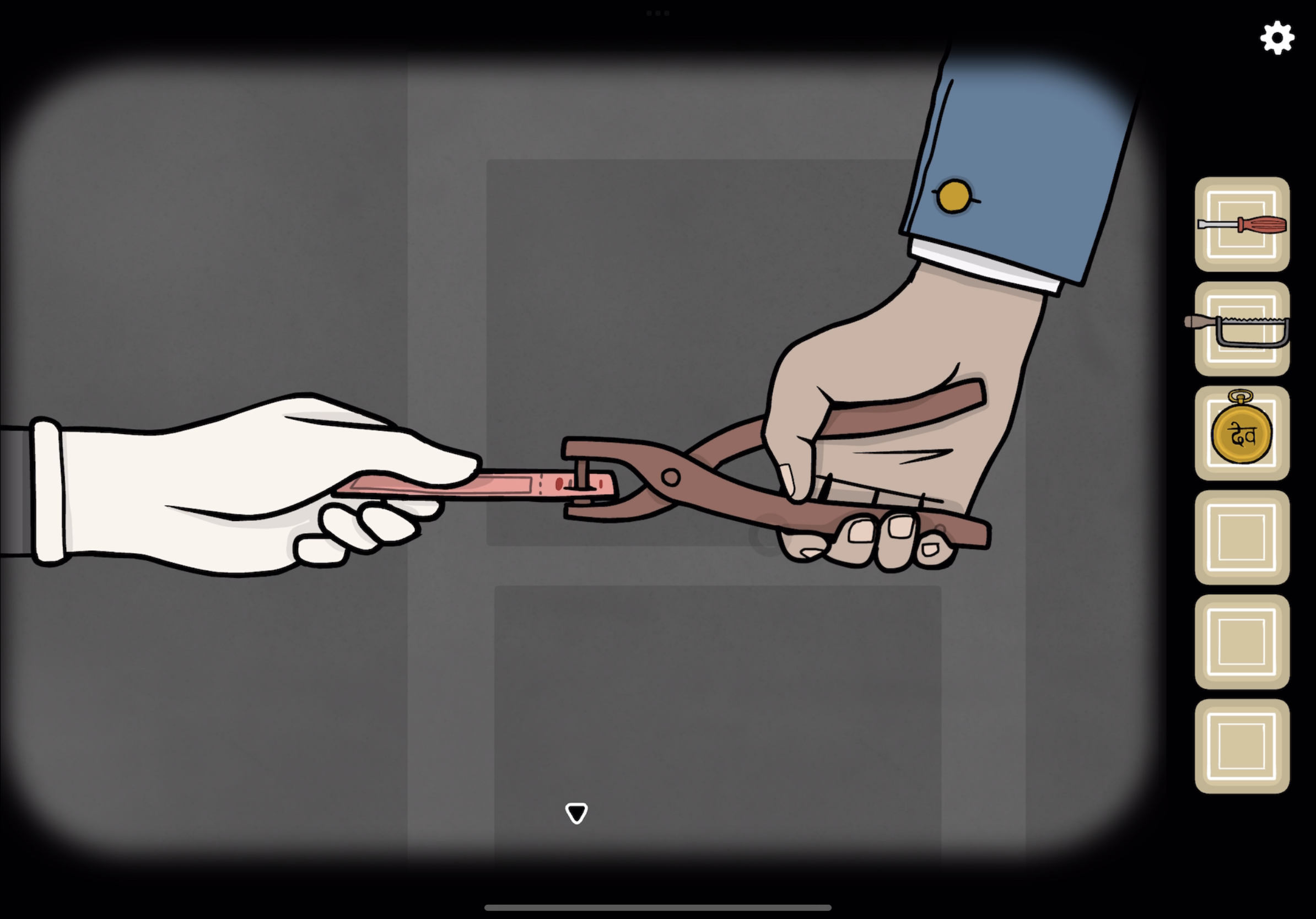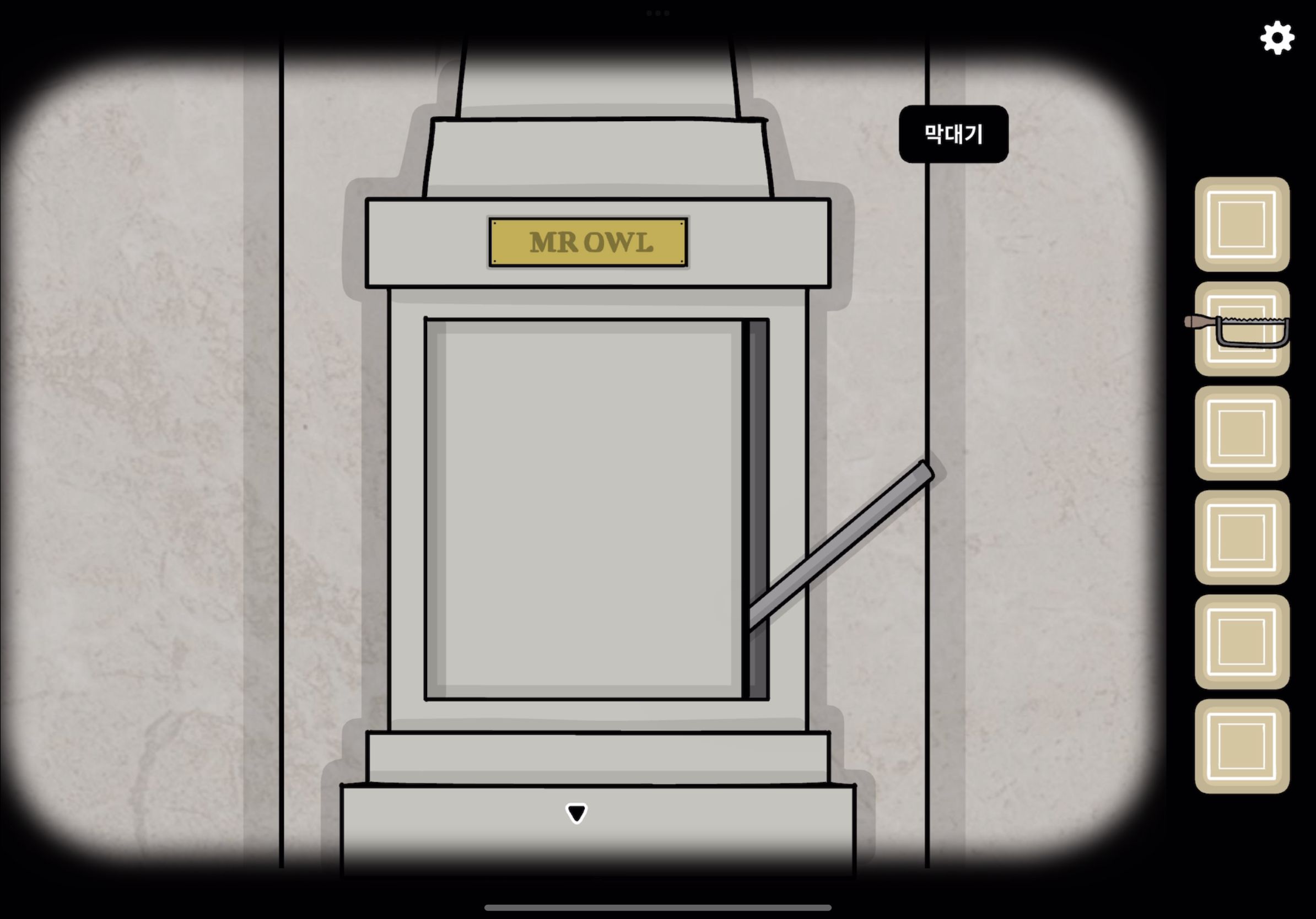 열린 틈으로 쇠막대를 넣고 위아래로 움직입니다.