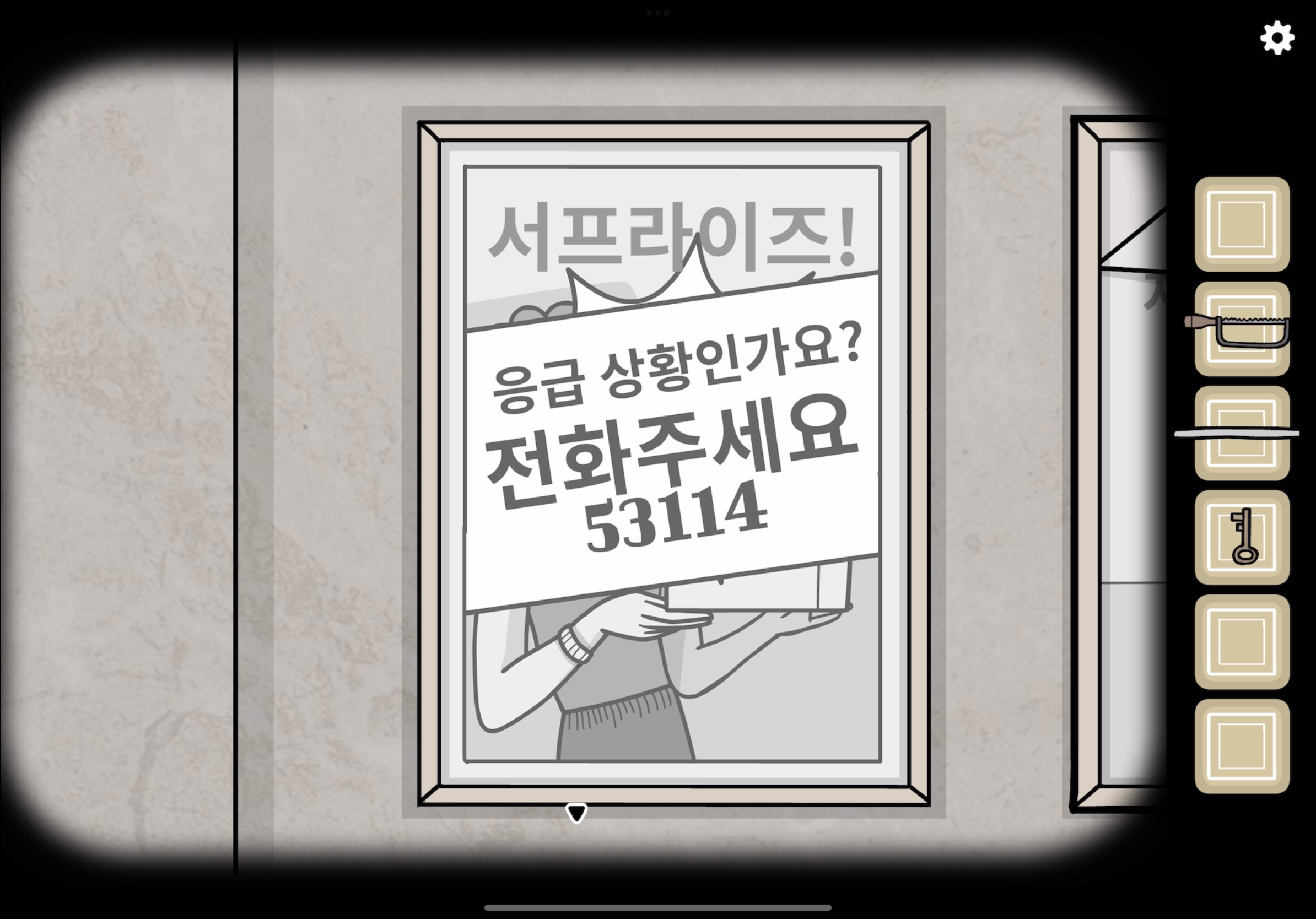 왼쪽 액자 하단에 껌을 붙입니다.