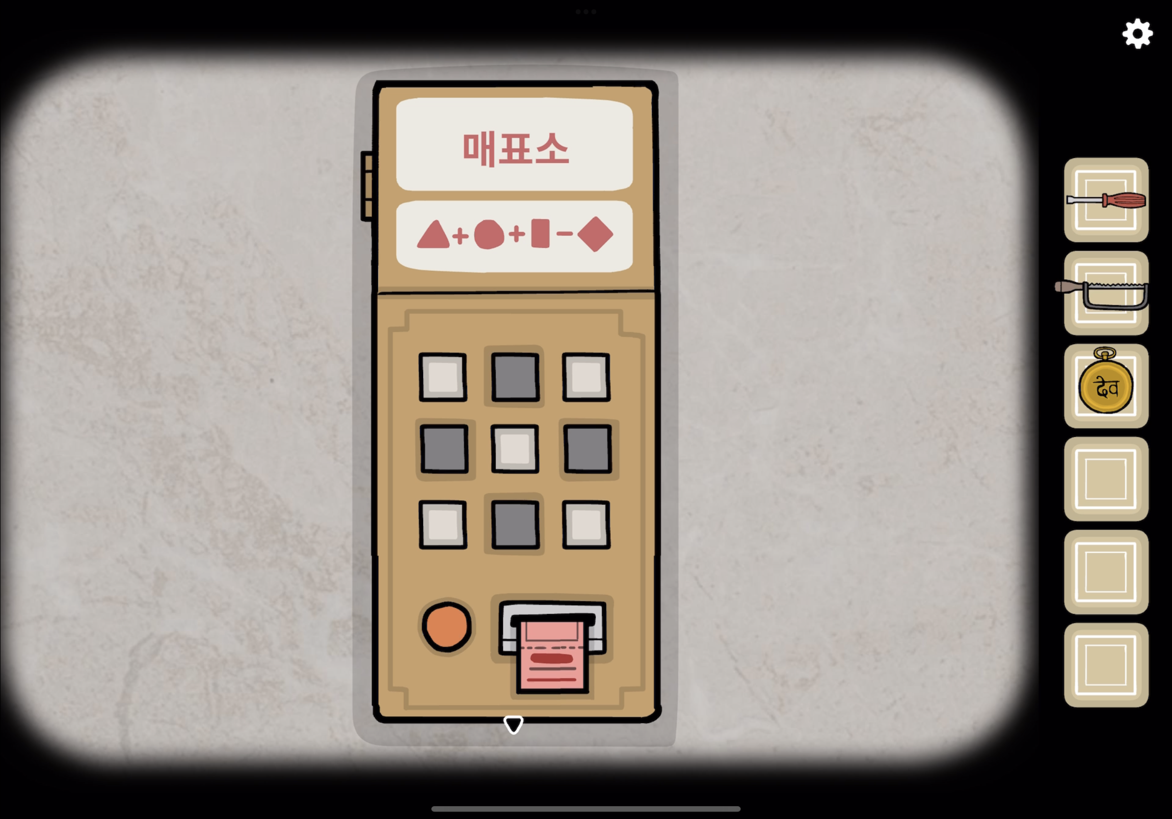 (세모 + 동그라미 + 직사각형의 노란 타일에 해당하는 위치를 누릅니다.