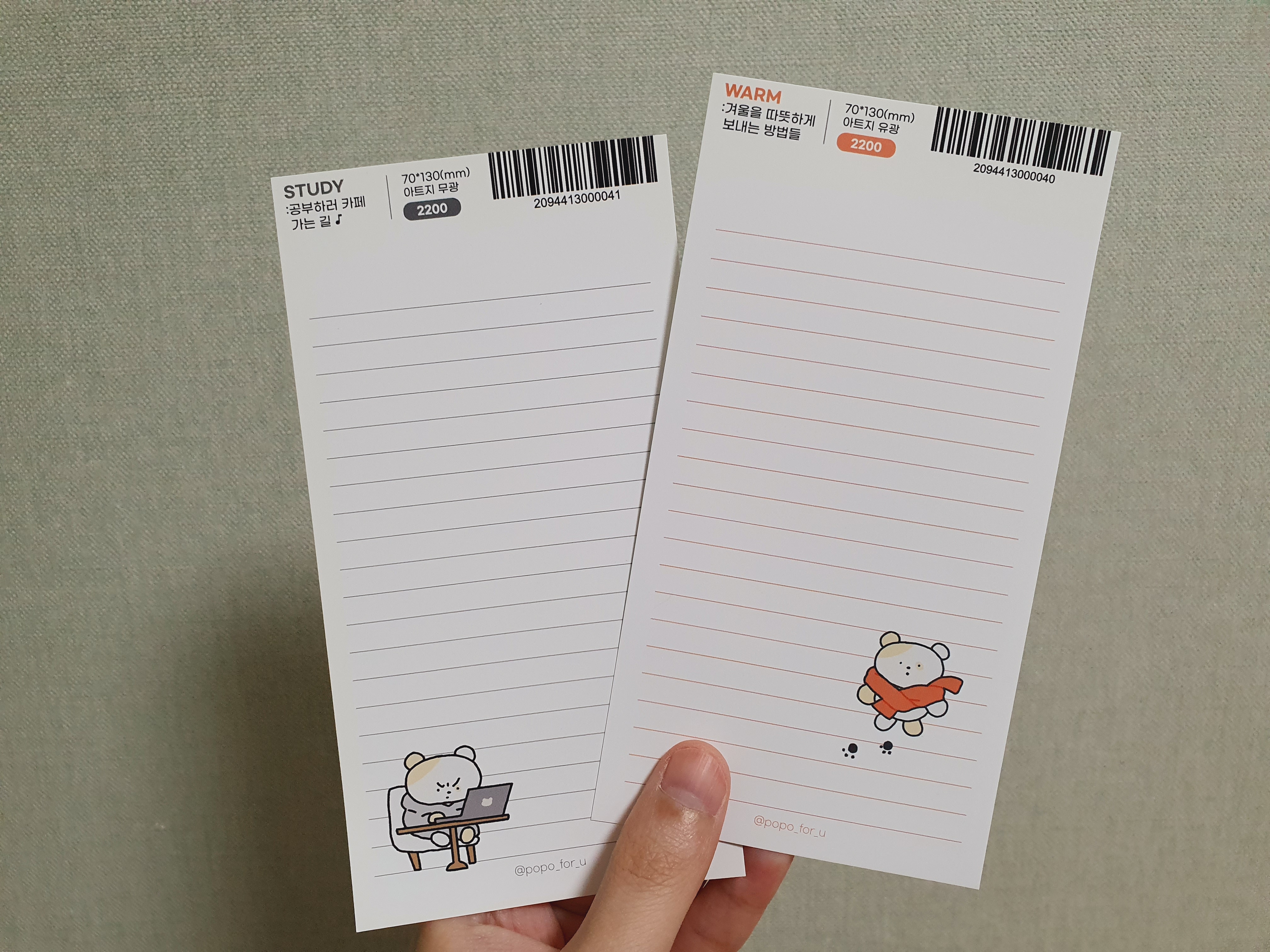 뒷대지가 편지지처럼 줄이 있어서 다꾸할 때 쓰면 좋을 것 같습니다.