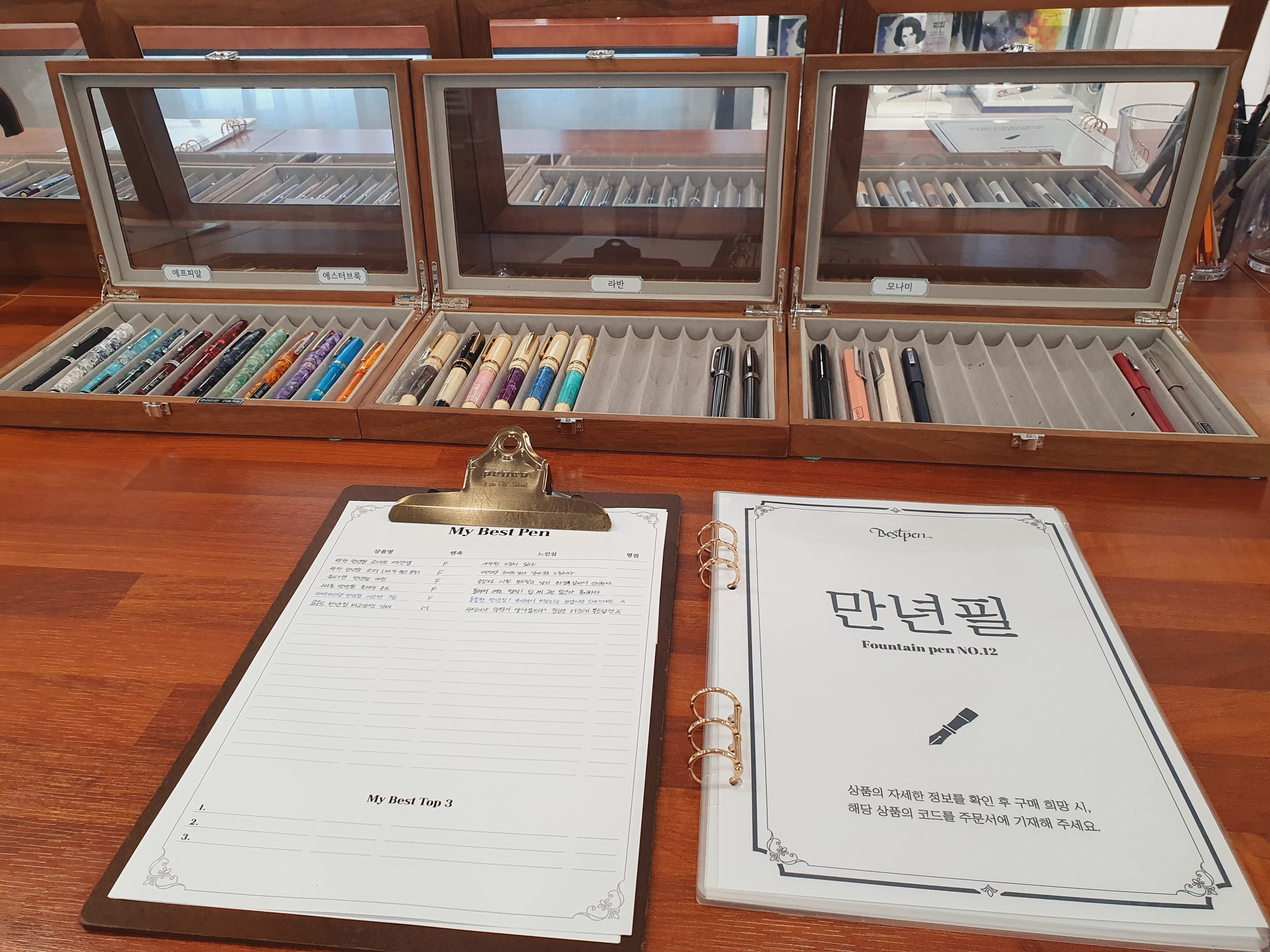 검색해 보니까 자유롭게 만년필을 시필할 수 있는 공간이 있었습니다.
