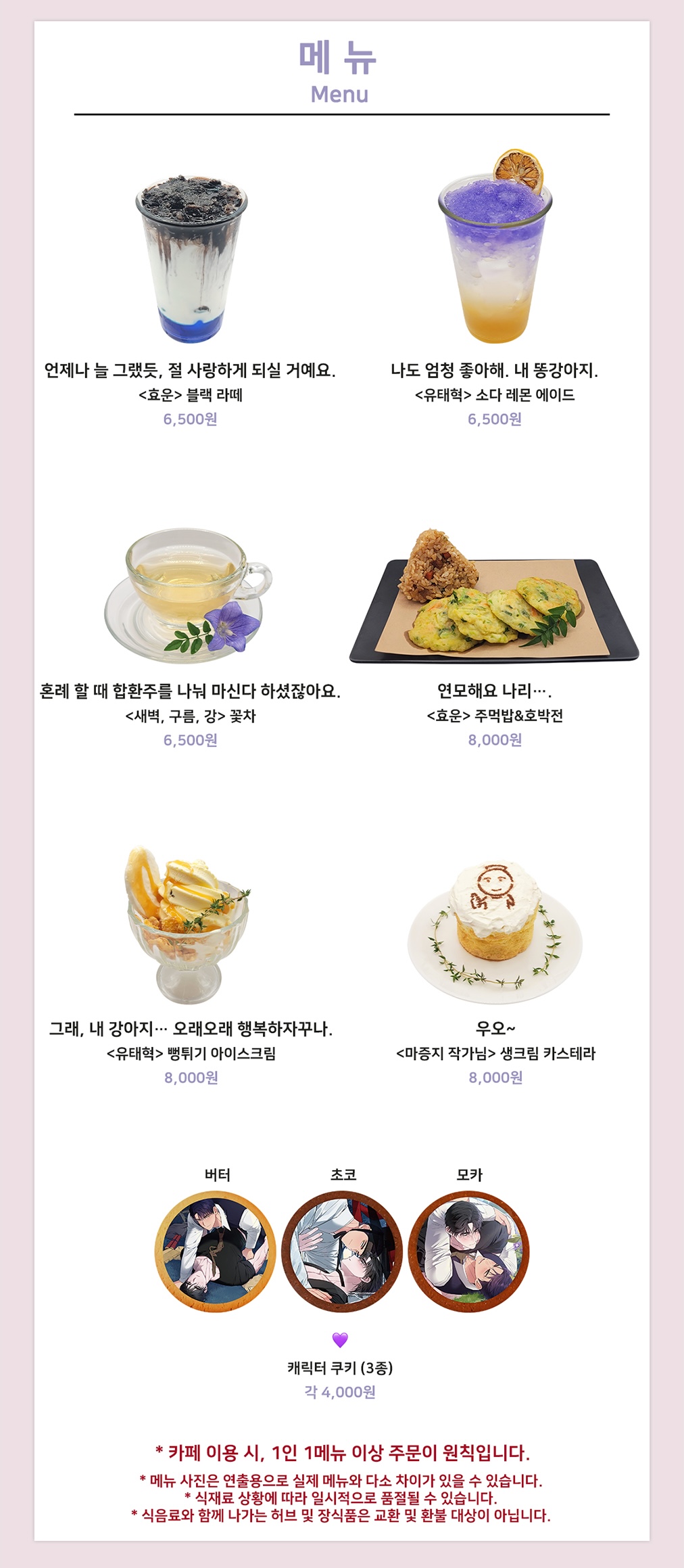 예전에 모펀에서 마증지 작가님 콜라보 카페가 열렸었는데 이번에 새구강 콜라보로 돌아왔습니다.