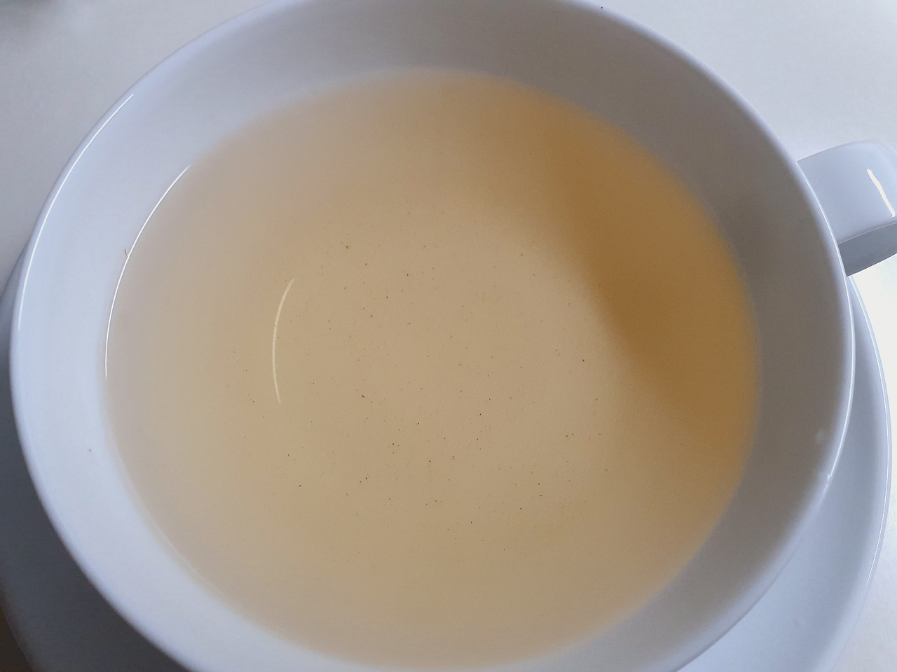 연한 분홍빛이 도는 백차색에 열대과일의 달고 느끼한 향이 났습니다.