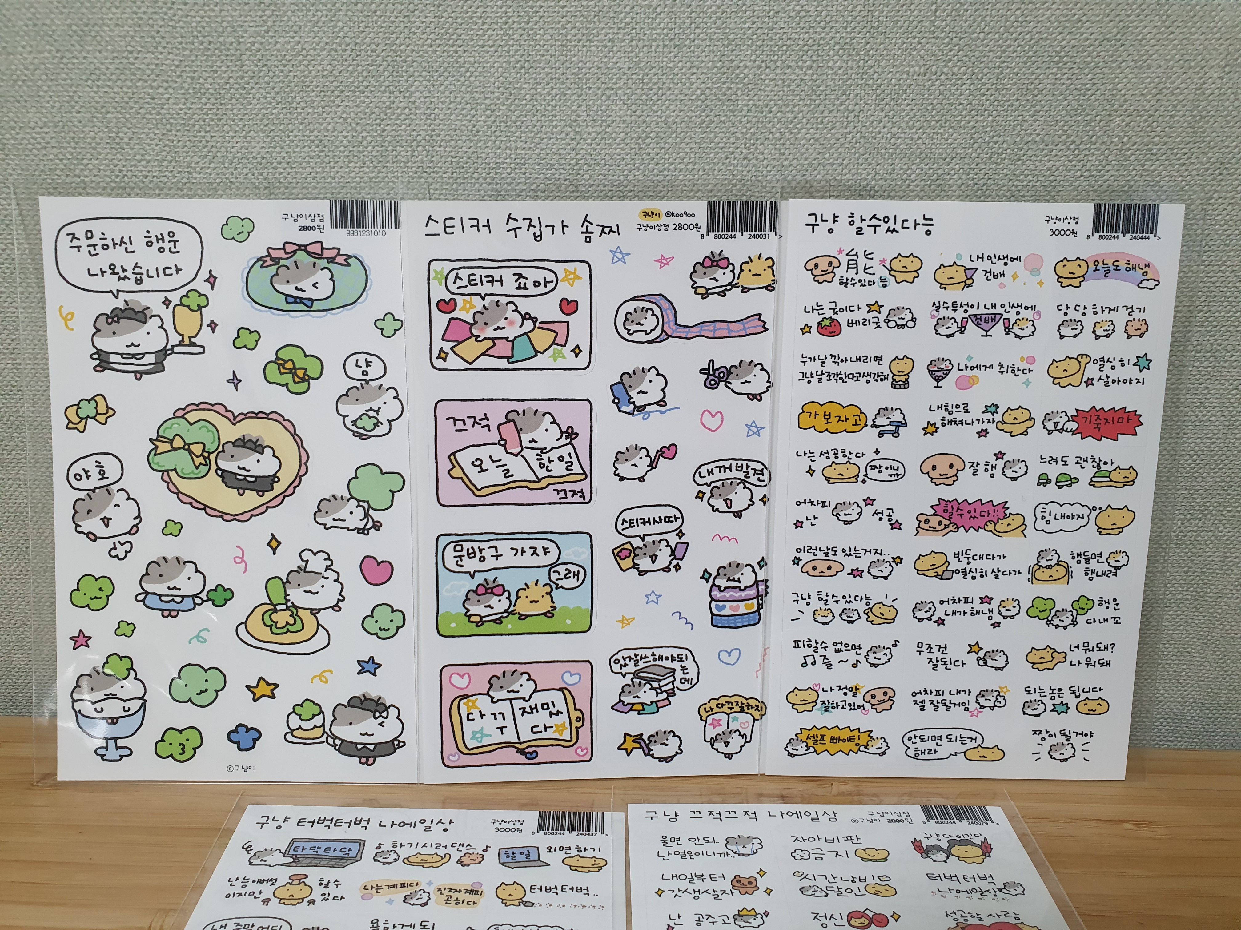 라벨 모양은 내용이 웃긴데 잘 쓸 수 있을 것 같아서 3장을 샀고, 스티커 수집가는 전부터 눈에 들어와서, 행운 메이드는 현장에서 사고 싶어서 구입했습니다.