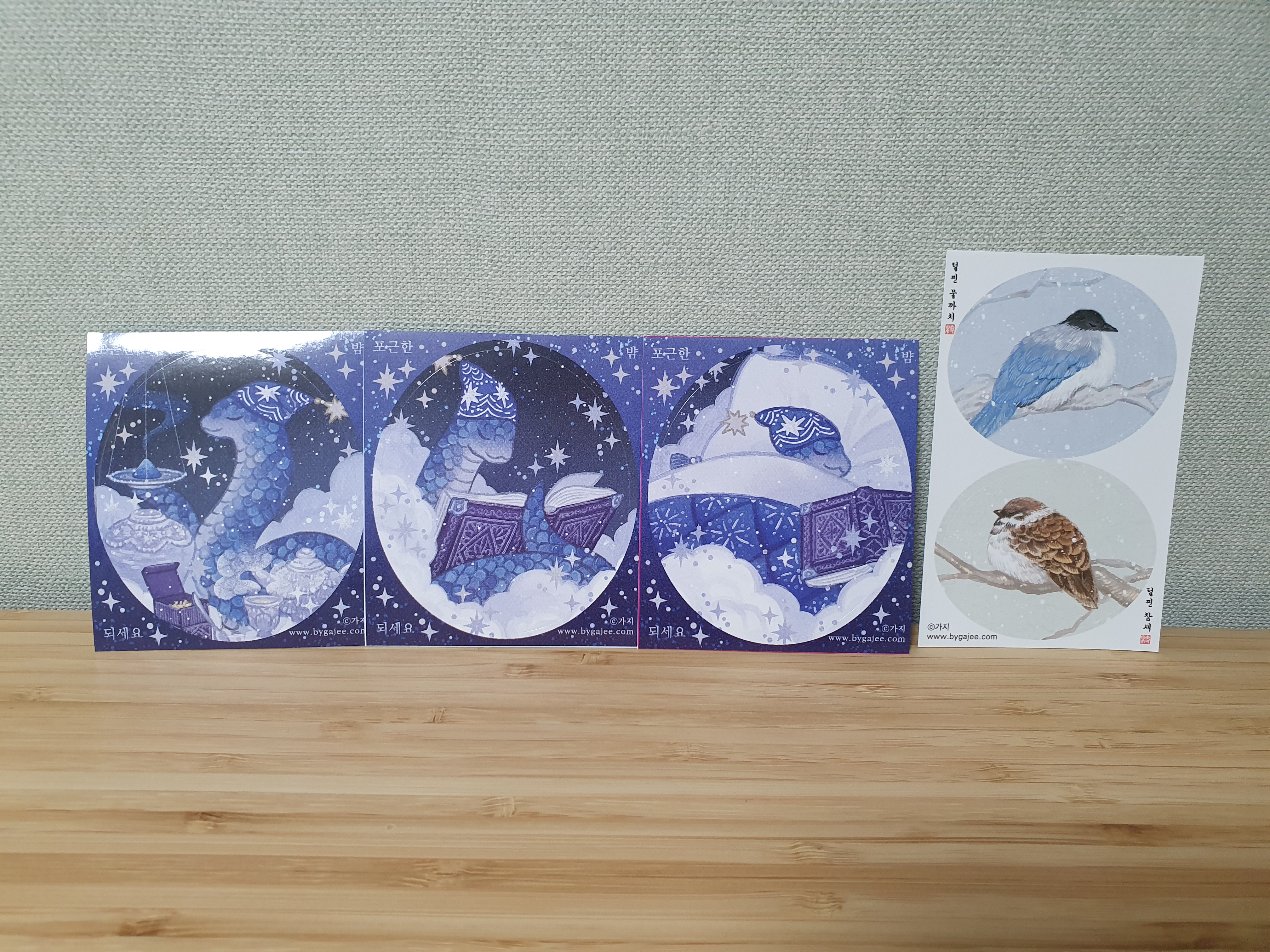 뱀 스티커를 사러 갔는데 포스터랑 엽서도 예뻤습니다.