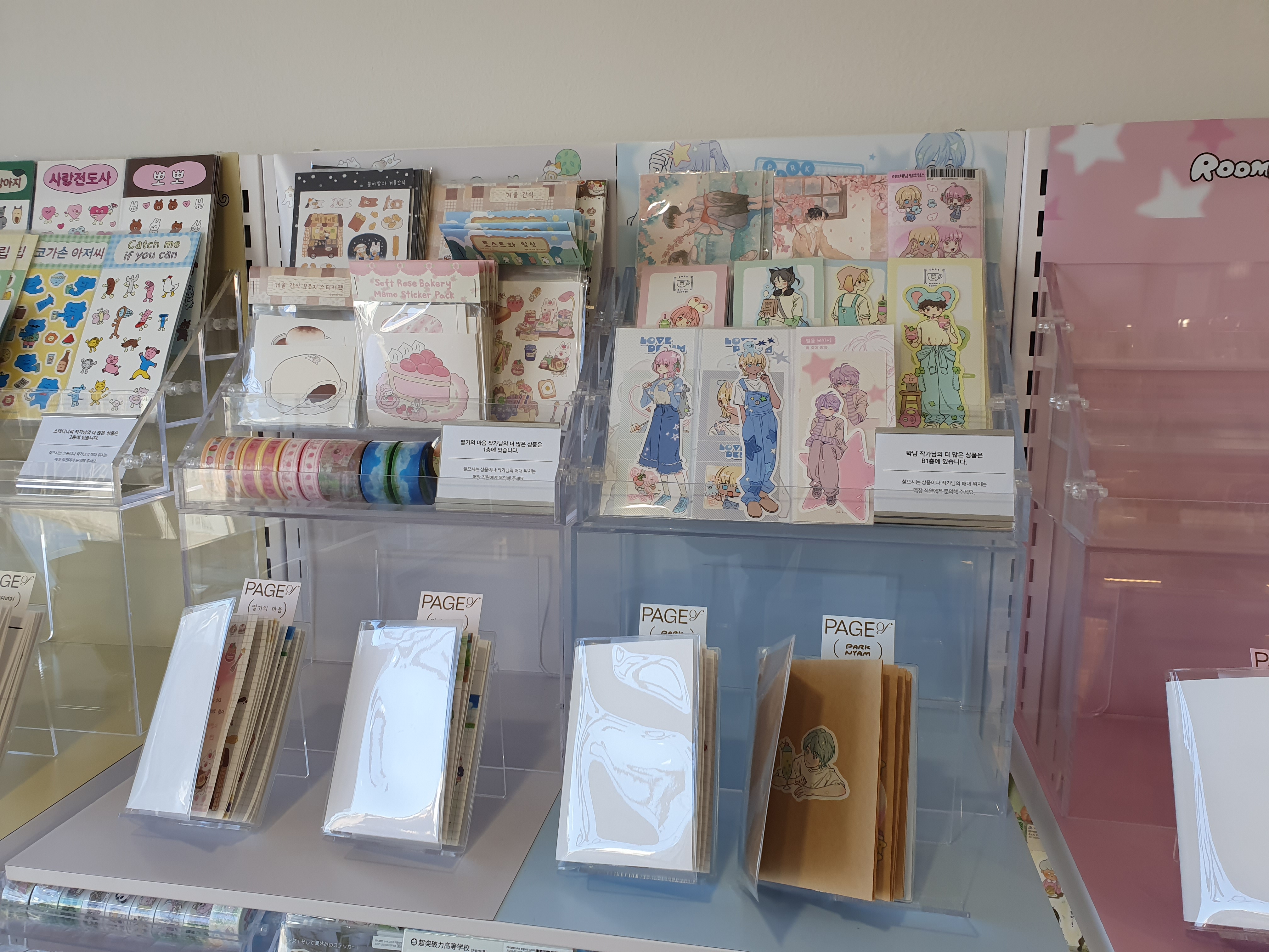 1층은 계산하는 곳과 편지지, 액세서리, 약간의 스티커가 있습니다.