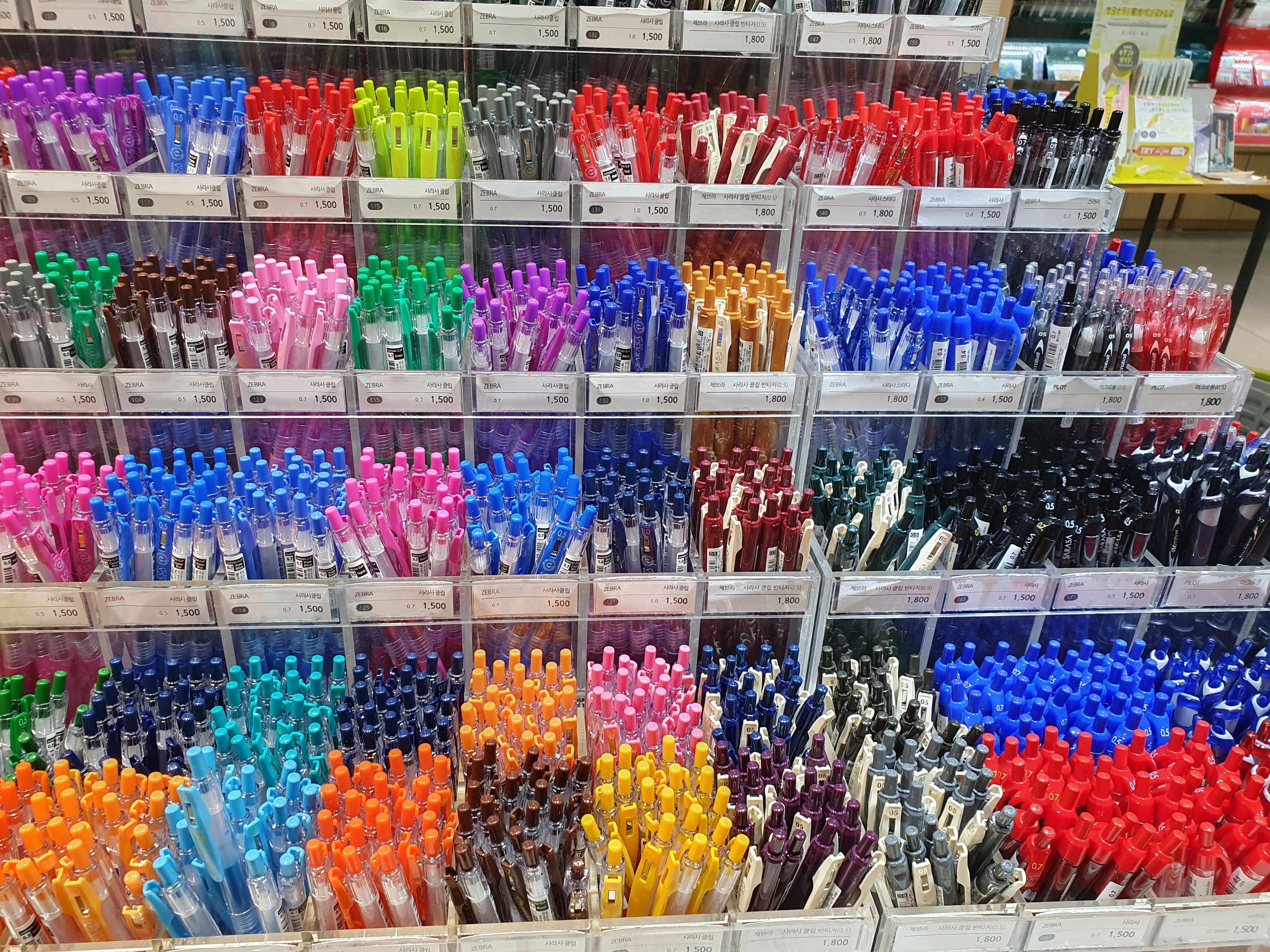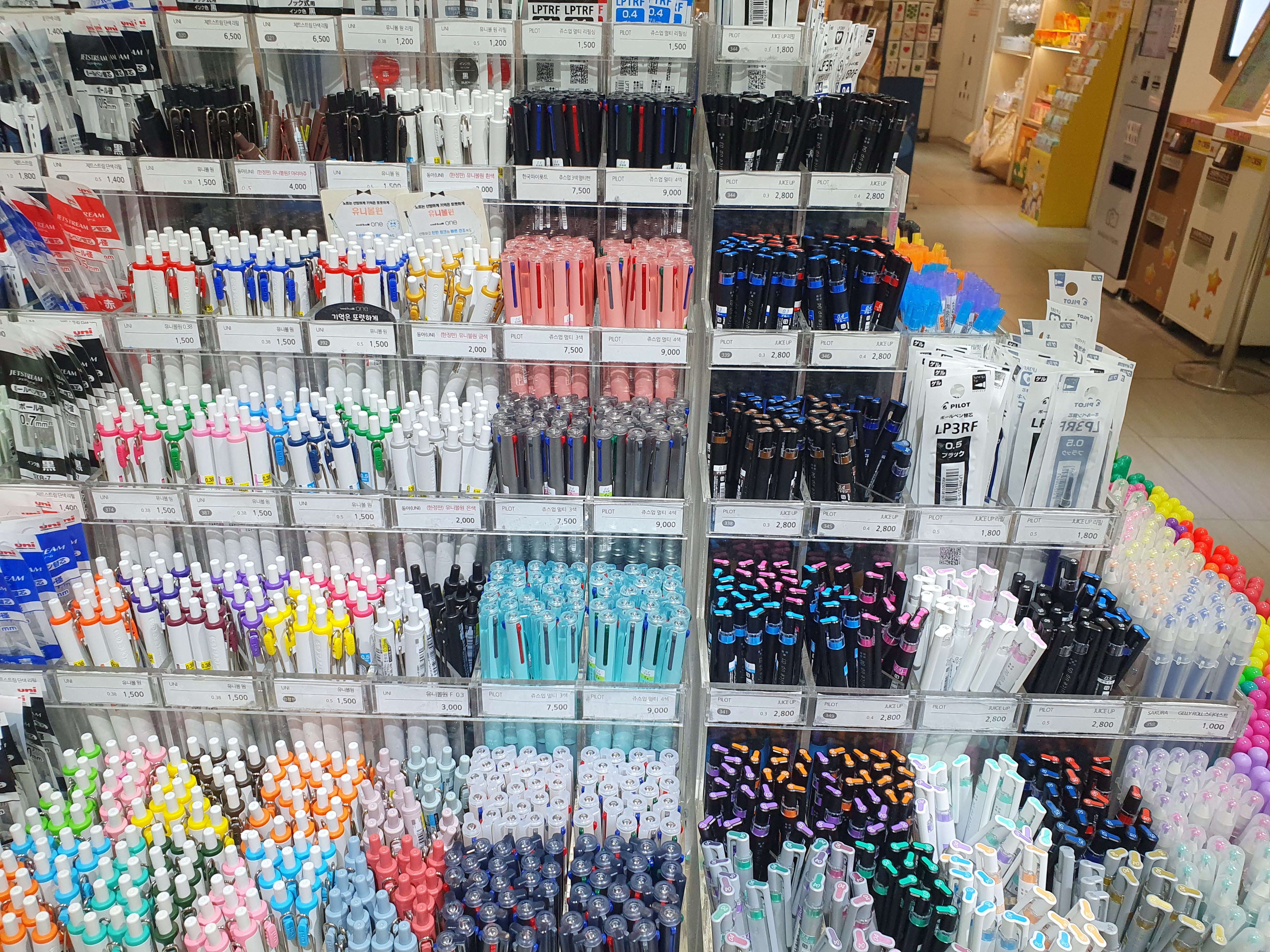 볼펜 코너를 구경했는데 사라사 색이 다양해서 놀랐습니다.