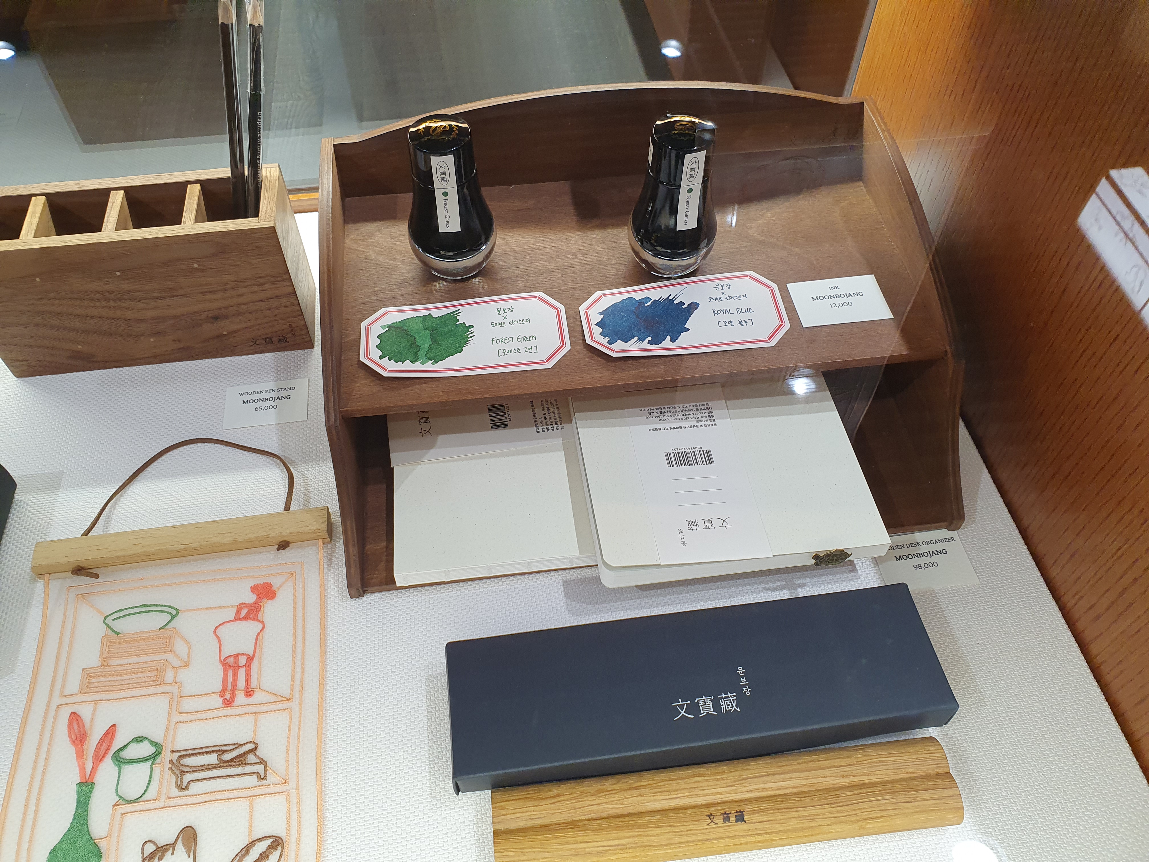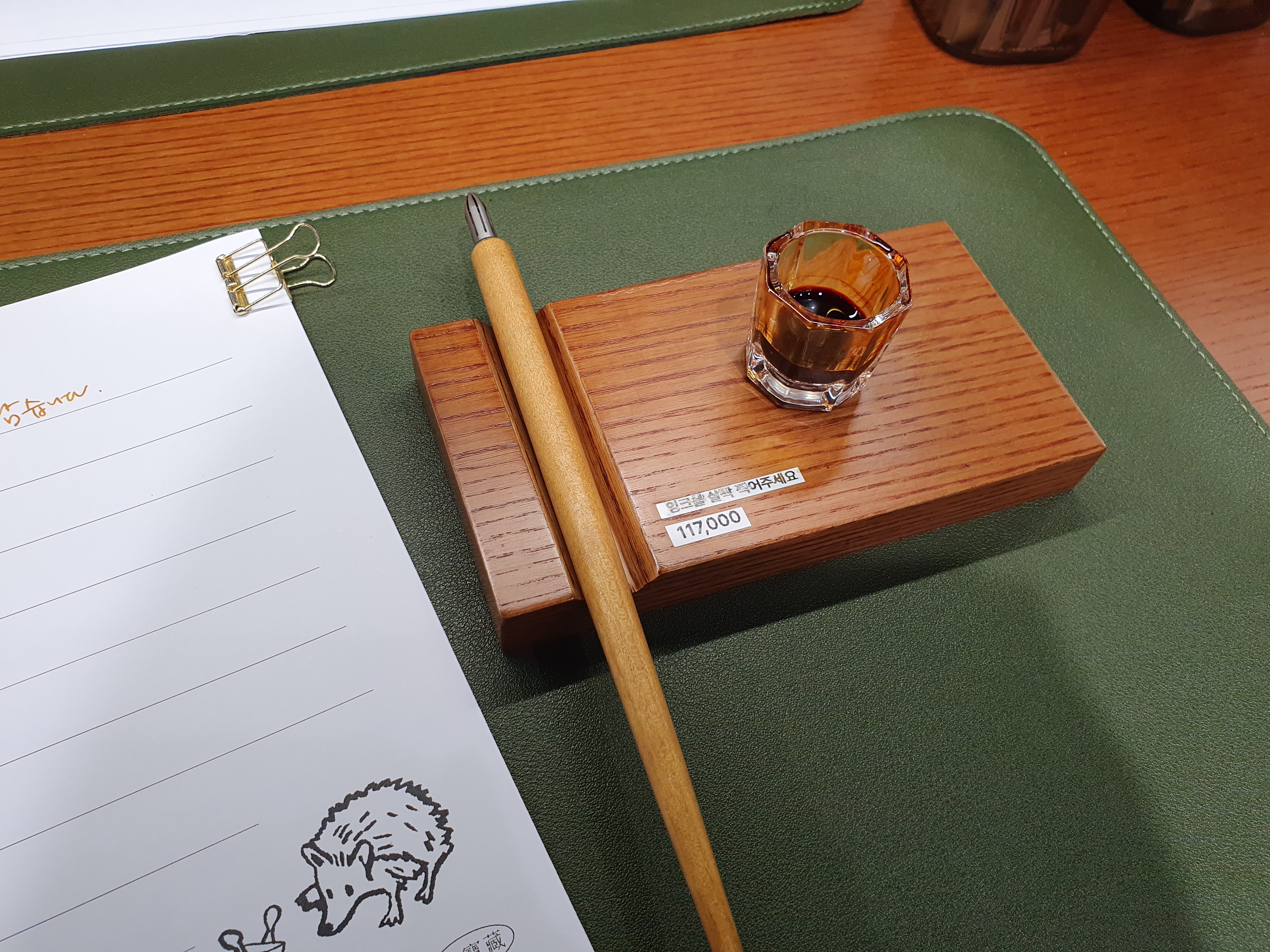 문방구인데 만년필, 잉크, 고급 종이 같은 제품이 있습니다.