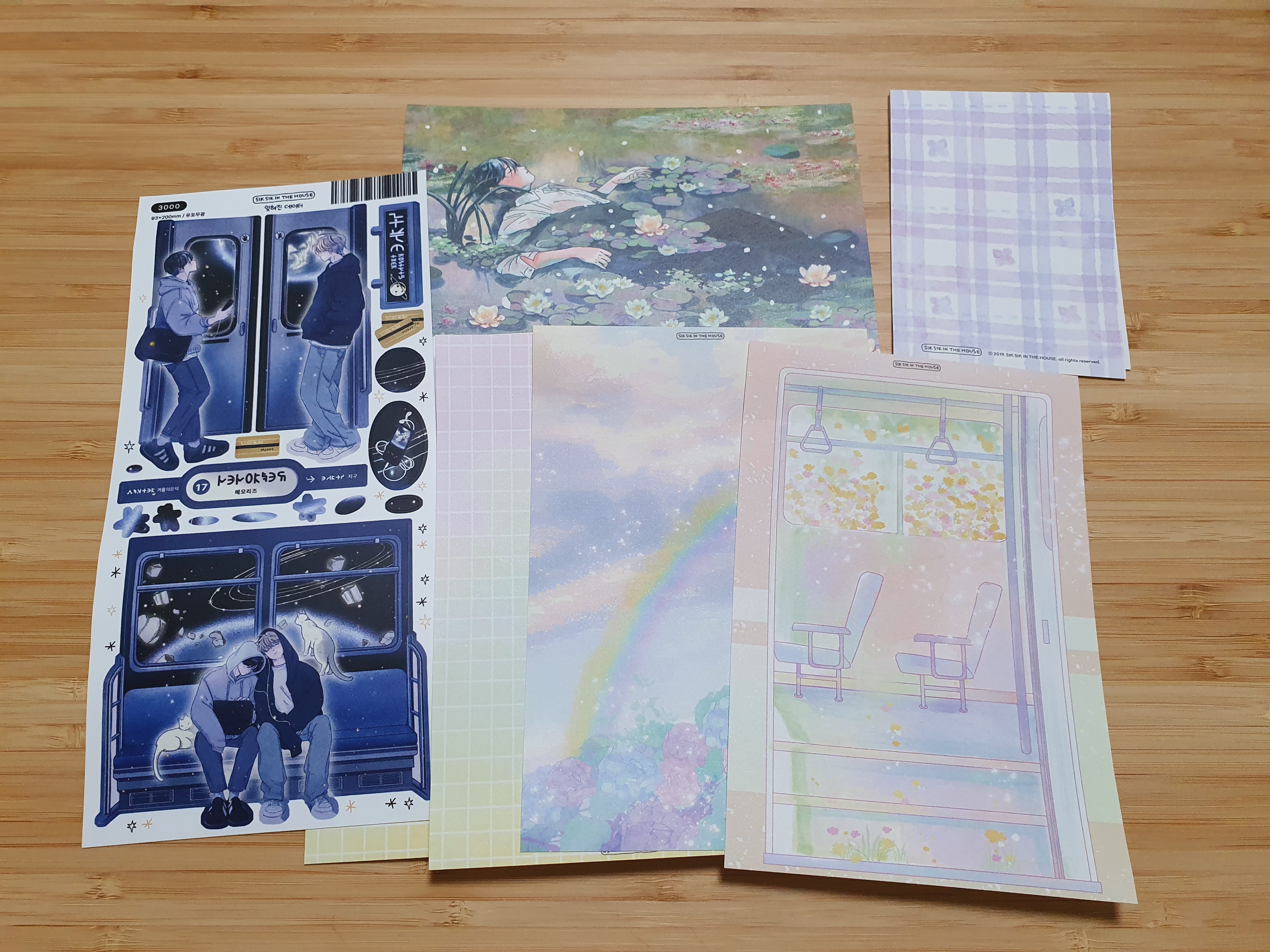 주문한 스티커랑 덤 폭탄이 와서 모조지를 친구에게 나눠주기로 했습니다.