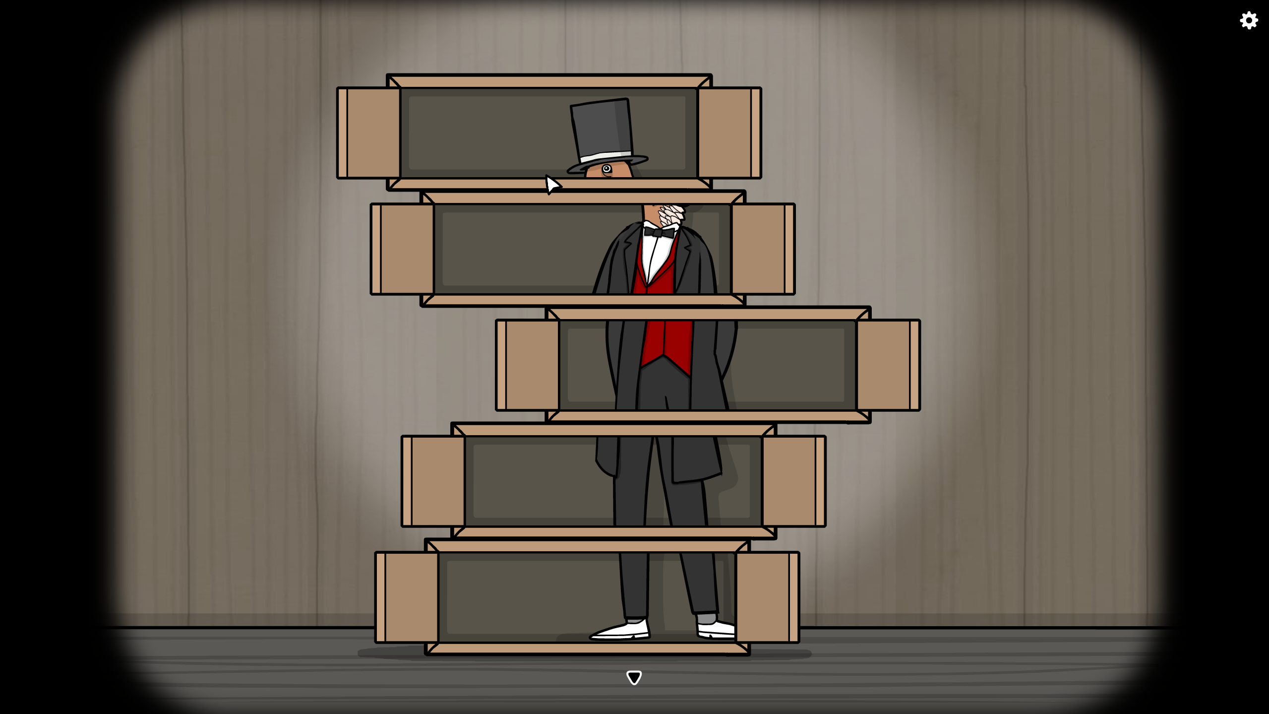 상자를 눌러서 문을 열고 미스터 래빗이 되도록 움직입니다.