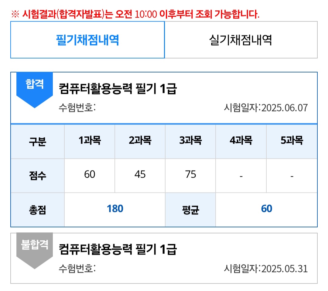 상시 시험으로 신청했고, 필기는 시험 다음 날 오전 10시에 결과가 나옵니다.