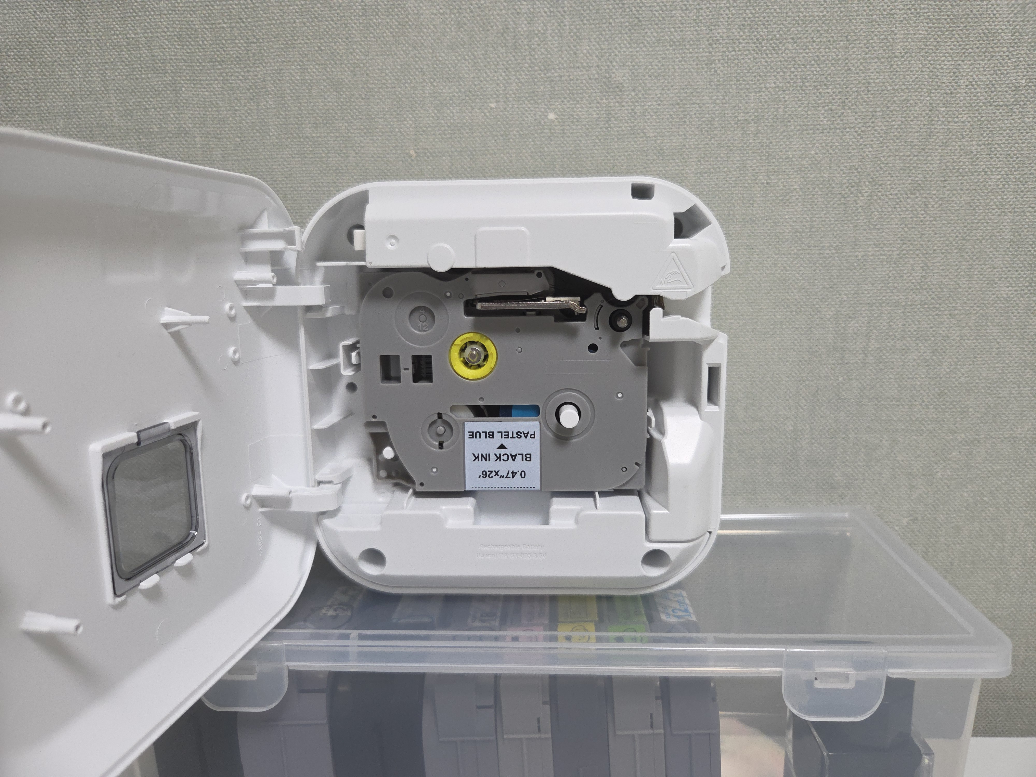라벨기 뚜껑을 열고 안에 테이프를 넣고, 원하는 도안을 뽑으면 끝입니다.