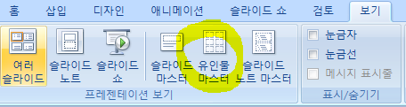 - 보기 - 마스터 보기 - [유인물 마스터] - 날짜와 페이지 번호 체크 해제