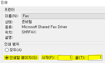 - [인쇄] 대화 상자: 인쇄할 페이지(시작 1, 끝 1)